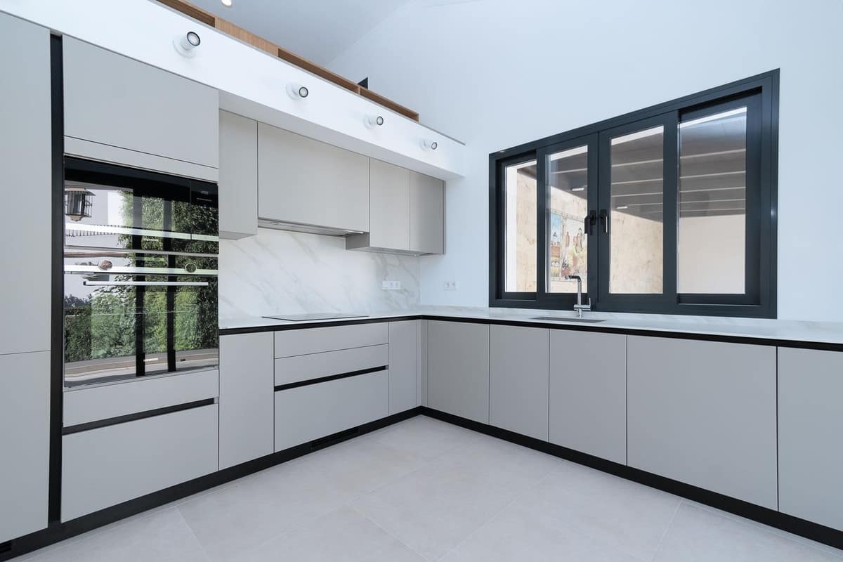 Natural wood floors in all bedrooms, radiators, an Italian-equipped Scavolini kitchen, built-in Scavolini wardrobes, Italian-made doors, and anthracite-colored aluminum exterior carpentry.