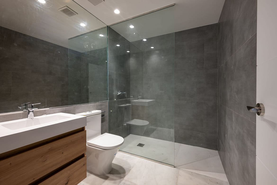 On the first floor, covering 112 square meters, you’ll find a luxurious master suite with an ensuite bathroom, accompanied by two additional bedrooms, each with its own ensuite. This level also features a charming 34-square-meter terrace, perfect for relaxing.