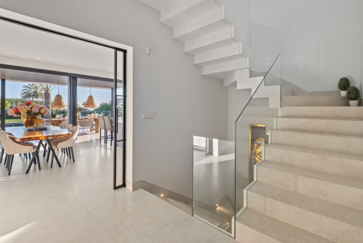 Boasting 4 spacious bedrooms and 5.5 bathrooms and fitness and relax room, this residence has been designed to maximize comfort and elegance. The upper floor features the master suite, with an open-concept bathroom and direct access to an impressive private solarium with a Jacuzzi, perfect for enjoying Mediterranean sunsets.