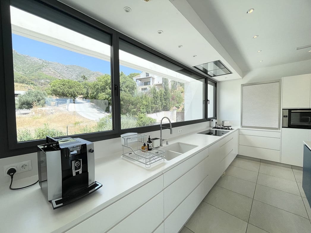 Set on a generous 1,718 m² plot, the villa welcomes you with a sense of harmony and exclusivity. A lush Japanese garden with a serene pond provides complete privacy and a peaceful retreat. Thanks to its privileged southwest orientation, the property enjoys spectacular sunsets and breathtaking views of both the mountains and the Mediterranean Sea. The outdoor area is designed for relaxation as well as entertaining, featuring a refreshing swimming pool, spacious terraces, a pergola, a fully equipped outdoor kitchen with barbecue, and a cozy lounge area. A charming wine cellar adds the perfect touch for memorable evenings with family and friends.