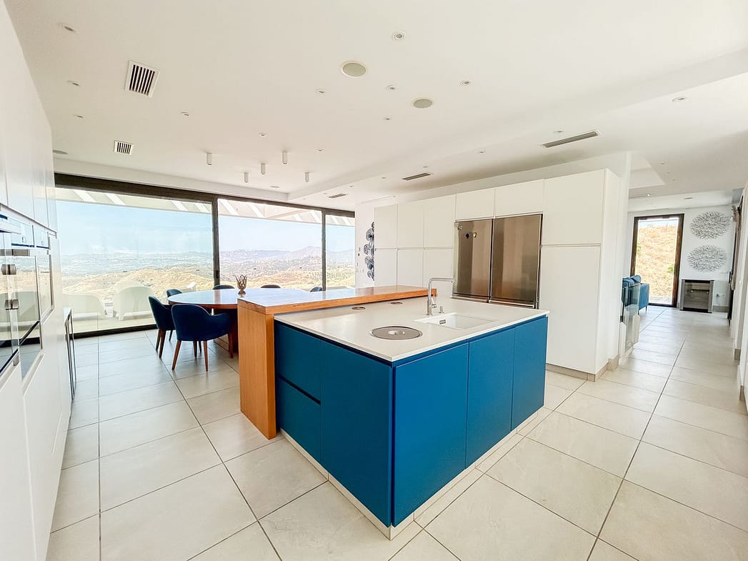 Built on a generous plot of 1,718 m², the property offers a total area of 312 m², distributed over three levels that combine functionality, design and warmth. With a privileged south and west orientation, the villa opens up to unrivalled panoramic views that encompass the Mijas valley, the majestic mountains and the blue Mediterranean Sea.
