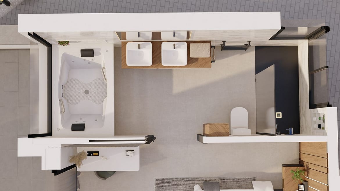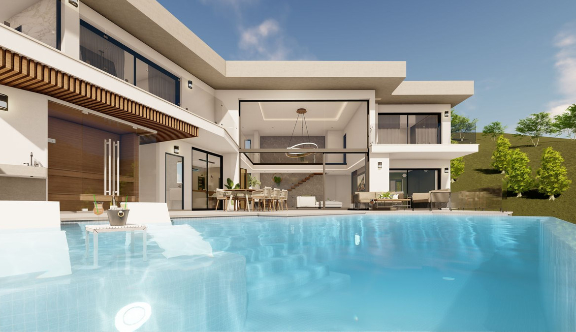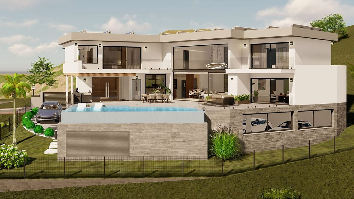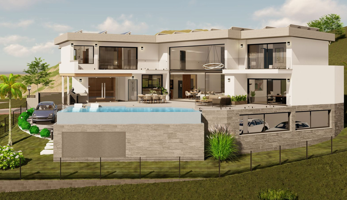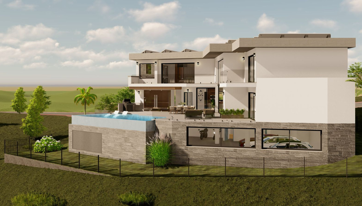 With the possibility of including a sauna or barbecue area with a kitchen, this villa offers a versatile space adaptable to your preferences. The spacious entrance allows parking for up to 5 cars, or even the option of converting part of the space into a private gym. Furthermore, there is the possibility of incorporating up to 5 or 6 bathrooms, catering to the individual needs of each owner.