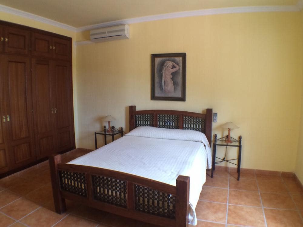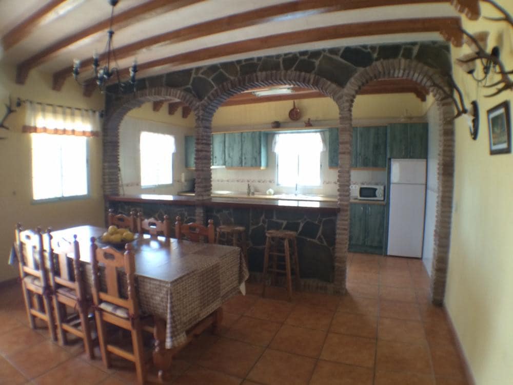 Fantastic Villa set in the countryside surrounded by an abundance of fruit trees and plants. The ground floor of the villa comprises of a spacious lounge with fireplace, dining area, fully fitted kitchen, 3 bedrooms and 1 bathroom. There is also a seating area on the covered terrace at the front. The upper floor is accessed by stairs on the outside of the property and has its own entrance. This floor has a lounge area, a bedroom and a bathroom, and a huge terrace which has uninterrupted sun! The villa is accessed via a good track/road, and has an electric fence at the entrance of the long driveway and ample parking area, a large private swimming pool and gardens. There is also a BBQ area and a separate outhouse for storage.