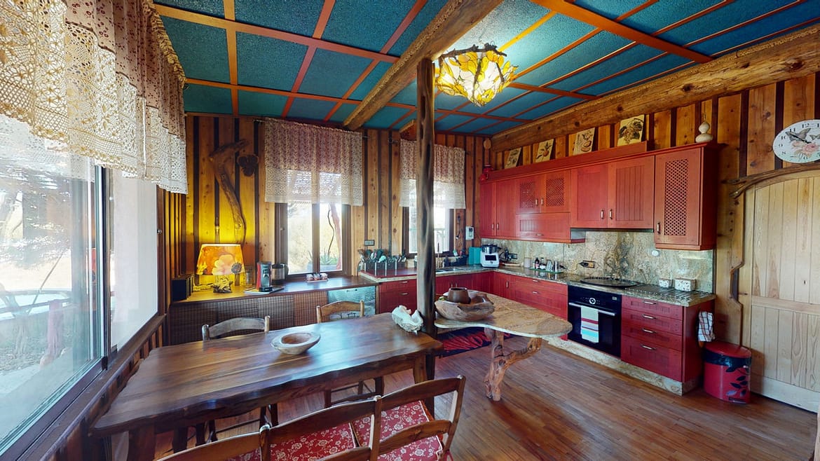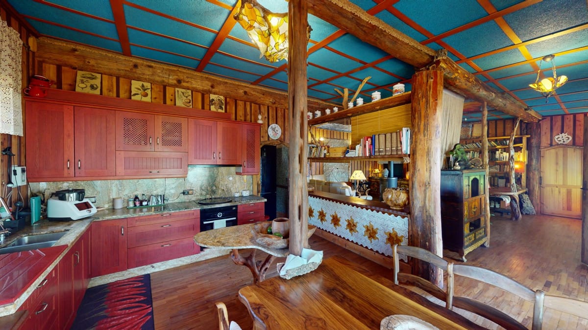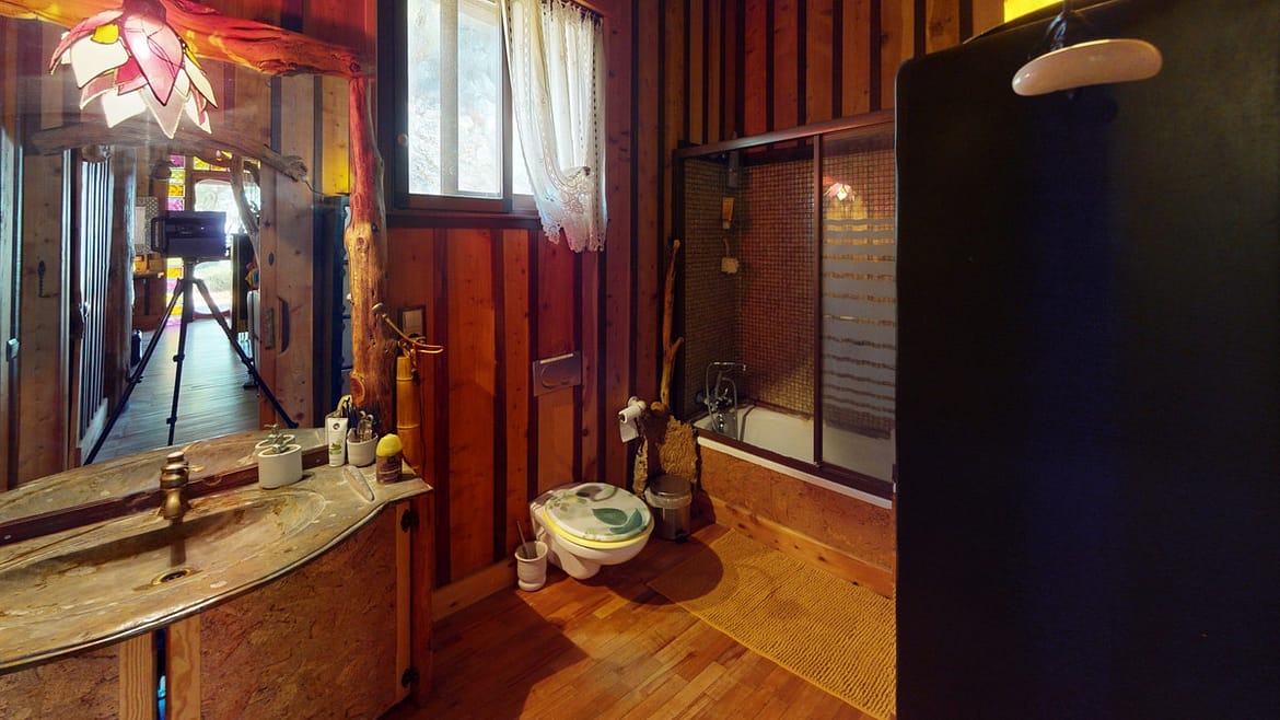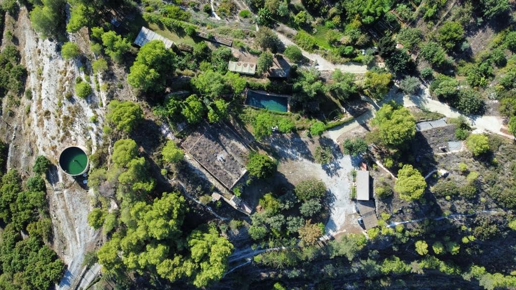 Between the Sierra de Almijara and the Mediterranean Sea lies this spectacular ecological finca of 4 hectares, bordering the natural park Maro-Cerro Gorde, which provides a haven of tranquillity and enormous privacy. The property has a plot of 35.955 square metres and offers a total of 270 square metres of construction. The property is completely surrounded by nature at its best, the property offers breathtaking views of the sea and the mountains, and all the buildings are completely hidden from each other thanks to its variety of trees, giving the feeling of living in a forest full of peace. The main house has a spacious living room at the entrance with a fabulous fireplace to heat the whole house, a fully equipped kitchen with a pantry, a dining room, a bedroom, a bathroom with a rain shower, a guest toilet, a reading and chill-out room, a sauna, a gym and an office that can be transformed into a large bedroom if needed. Leaving through the office we find a room built in a kind of igloo made of natural bricks. It also has a terrace perfect for relaxing and enjoying the surroundings. The secondary house offers a cosy space with a living-dining room and fireplace, a fully equipped kitchen, a bedroom, a bathroom and a private terrace which is hidden from the other property to provide a greater privilege of privacy. The guest residence has a bedroom, a kitchen and a bathroom. The finca has an equipped workshop of 25m2. It also offers a swimming pool area, a perfect area to take a peaceful break, thanks to the nature and the spaciousness of the pool it gives us the feeling of swimming in a lake in the middle of the forest. The property is made up of five buildings strategically distributed and set apart to guarantee maximum privacy and peacefulness for its residents. We also have a platform of approximately 300m2 with 360o views of the sea and the mountains. The estate has an extensive variety of fruit trees and flowers from all over the world, with 174 different varieties of trees. The property has water from a natural spring, a well and water from the irrigation community, it has 2 covered concrete water deposits of 125,000 litres and another water deposit of the spring water in the main house of 3,000 litres. The finca is reached by a 4 km asphalted road from the N-340 road. – It is 6 km from the beaches of the natural park. – 10 km from the centre of Nerja – 80 km from Malaga airport – 90km from the centre of Granada With all services and enjoying a real and varied sovereignty in what is considered to be the best climate in Europe, this place is truly a place to enjoy an excellent quality of life. We are pleased to be able to present this dream property to you soon, either personally or via virtual viewing. Because this world is unique – just like our Axarquía. In Andalusia. On the Costa del Sol. Here, on the sunny side of life…