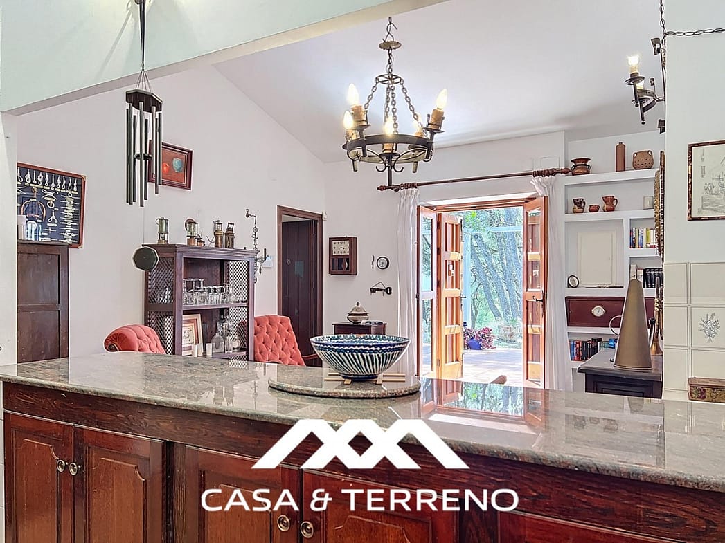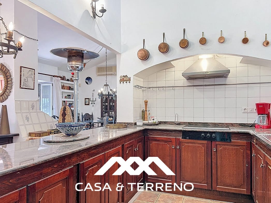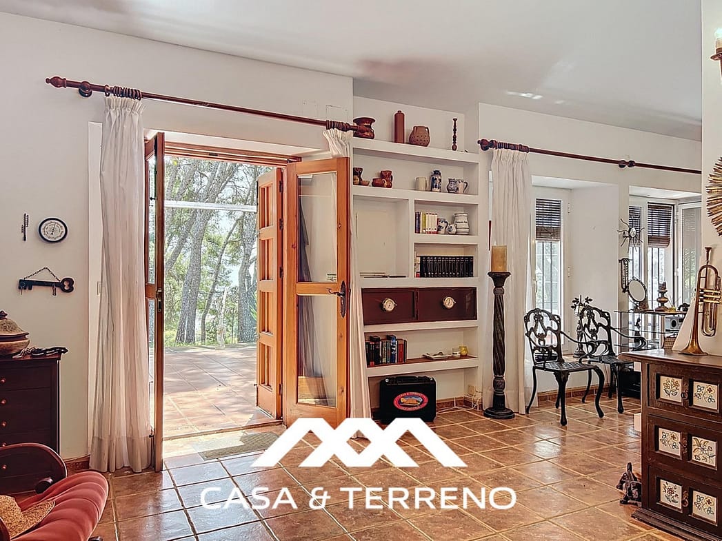 Located between Frigiliana and Nerja, this charming Andalusian-style property combines a comfortable main house with extraordinary exteriors, set on a spectacular plot of over 6,000 m2. Surrounded by mature pine trees and with complete privacy, this finca conveys the feeling of having your own private forest: quiet, green and full of character. The main house, distributed over one floor, offers three spacious bedrooms and three well-equipped bathrooms. The master bedroom is especially generous, providing a perfect space to relax. Terracotta floors and built-in shelving bring warmth and authenticity throughout the home. The living-dining room is bright and open, with high ceilings, large windows and a cosy fireplace, which connects seamlessly with the kitchen, equipped with rustic wooden cupboards, modern appliances, a pantry and charming details such as a row of copper pans. A covered terrace extends the life to the outside, perfect for dining in the shade or lounging all year round. There is also an integrated barbecue area and a separate building next to the main house, currently used as a storage room. But what really makes this property special is its impressive plot. Pine trees provide natural shade and a relaxing atmosphere, while small stone steps lead through the terraced grounds, generating the feeling of a retreat in the middle of nature. In addition, it has a full-size tennis court, a garage and a beautiful pool area with sea views among the trees. Next to the pool, the guest house offers an open-plan living space and bedroom, with a small kitchen and bathroom. Located just below the main house, it guarantees complete privacy and is ideal for visits or even for renting. A unique property for those who value space, tranquillity and nature, without giving up the proximity of the beaches of Nerja and the charm of the white village of Frigiliana. An uncommon combination of interior comfort and outdoor magic in one of the most desirable areas of the Axarquía. We are delighted to be able to present this property to you soon, either personally or via virtual viewing. Because this world is unique – like our Axarquía. In Andalusia. On the Costa del Sol. Here, on the sunny side of life…