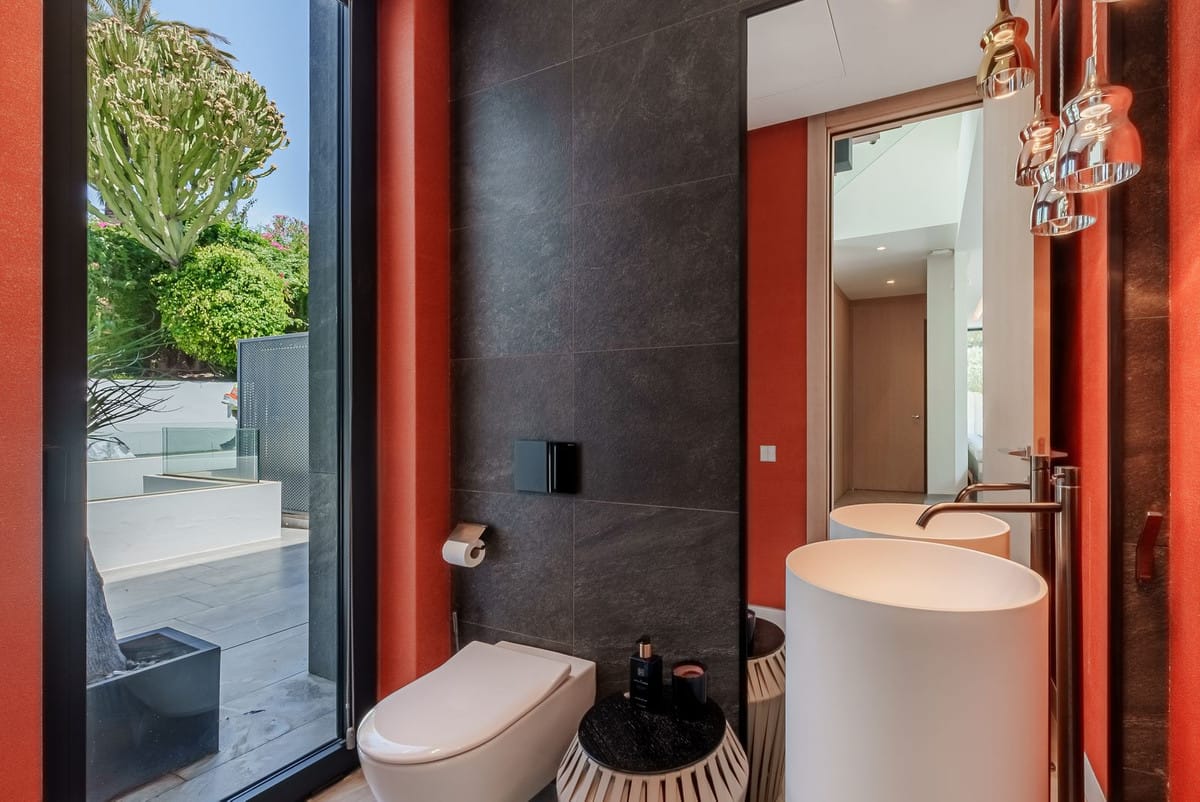 The upper floor is home to the master suite and a fourth bedroom, both of which open onto a magnificent terrace offering breathtaking views of the sea and the iconic La Concha mountain. From this terrace, ascend to the rooftop, where you'll discover an even more expansive outdoor space complete with a luxurious jacuzzi and unparalleled panoramic views.