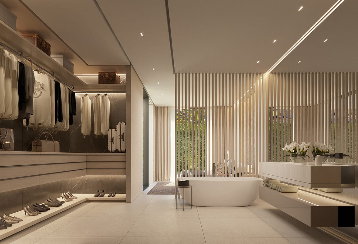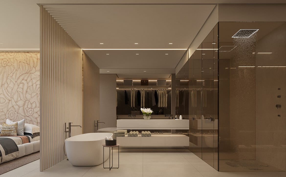 On this level, you'll discover four exquisite bedrooms, each featuring its own en-suite bathroom and private terrace. The master suite, with nearly 40 square meters of space, encompasses a walk-in closet and an elegantly designed open-plan bathroom, delivering the epitome of a luxurious suite experience.