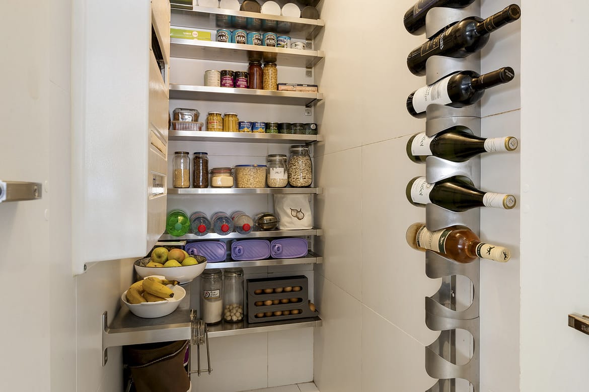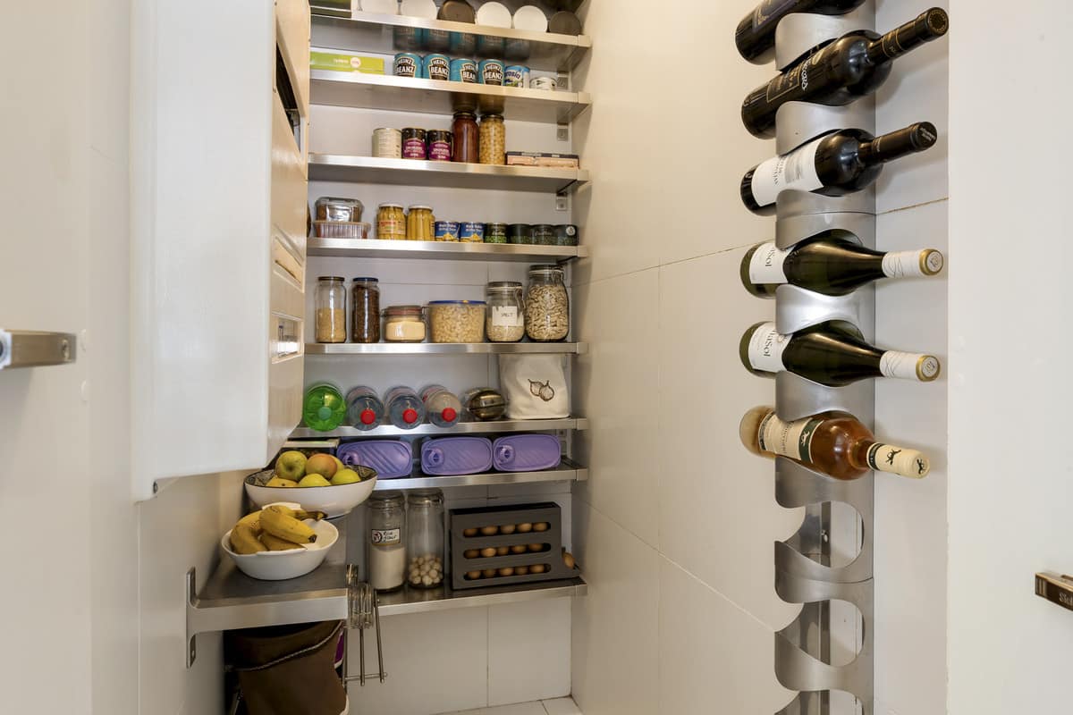 The modern kitchen is fully equipped and includes a dedicated fridge room with ample space for storing food, drinks, and supplies, a practical and luxurious feature that enhances everyday living and entertaining convenience.