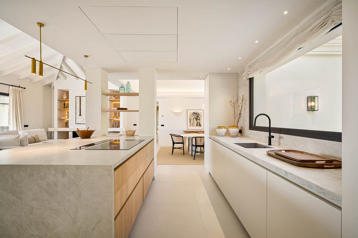 Welcome to a beautifully reimagined single-level villa nestled in the heart of Nueva Andalucía, just minutes from the renowned Los Naranjos Golf Course. Designed and developed by Casas Fintech, this exquisite 4-bedroom home merges Mediterranean elegance with contemporary comforts. Set on a lush, elevated plot, the villa offers privacy, tranquility, and breathtaking views across the valley to the sea, all while being moments away from Marbella’s best golf, dining, and beach experiences.