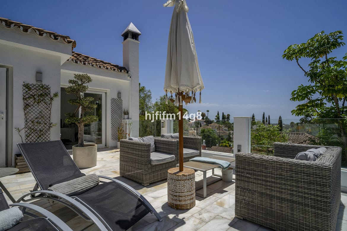 Discover this elegant villa located in the prestigious Los Naranjos Hill Club, Nueva Andalucía. Situated in a peaceful cul-de-sac, this charming home offers a perfect blend of privacy, comfort, and Mediterranean lifestyle, just a short distance from top international schools, renowned golf courses, and only 4 km from the golden beaches and luxury marina of Puerto Banús.