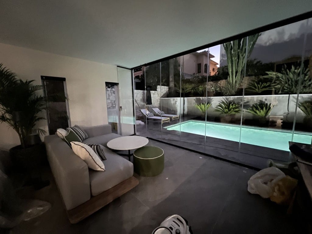 It has 4 serene bedrooms, one with a real fireplace and 3 magnificent bathrooms with luxurious freestanding oval bathtub, thermostatic showers. An open living room unites a lounge, a lounge with a fireplace perfect for movie nights, a bar and an open kitchen, fully equipped and personalized with top quality appliances. Covered sunny terraces, beautiful tropical outdoor area with waterfalls, outdoor lounges, solarium and chill out and outdoor dining area that invite you to relax.