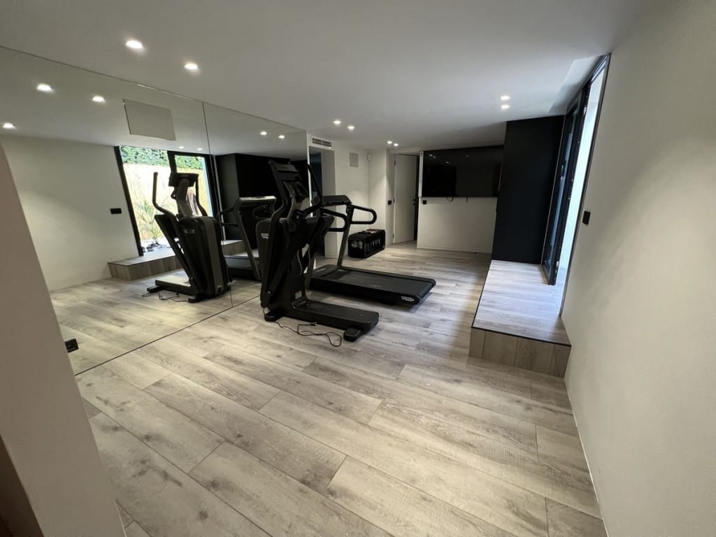 It is worth mentioning a 7 x 3 saltwater pool, a sauna for 8 pax, a Technogym fitness on the ground floor next to the home cinema and another game area with a bar. Environmentally friendly and energy efficient property in excellent condition, with home automation system, underfloor heating in bathrooms, air conditioning, double glazing, fitted wardrobes, dressing room with lighting, separate guest toilet, carport for two cars