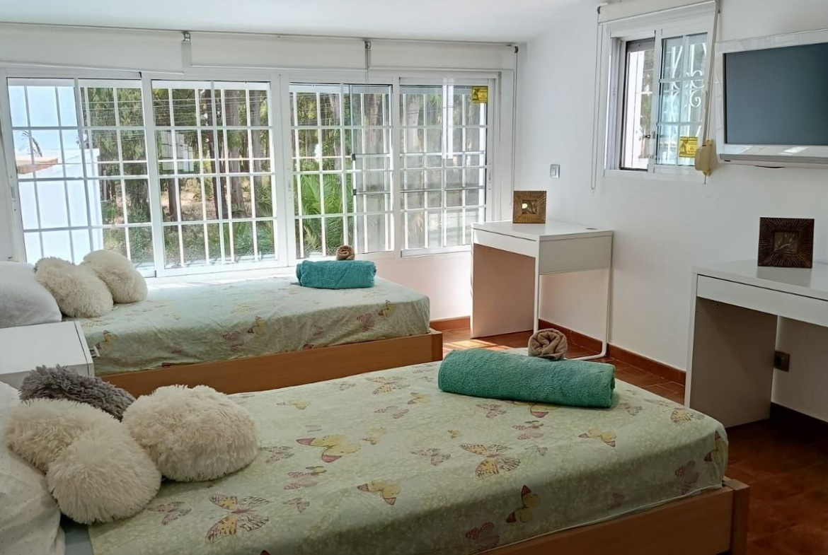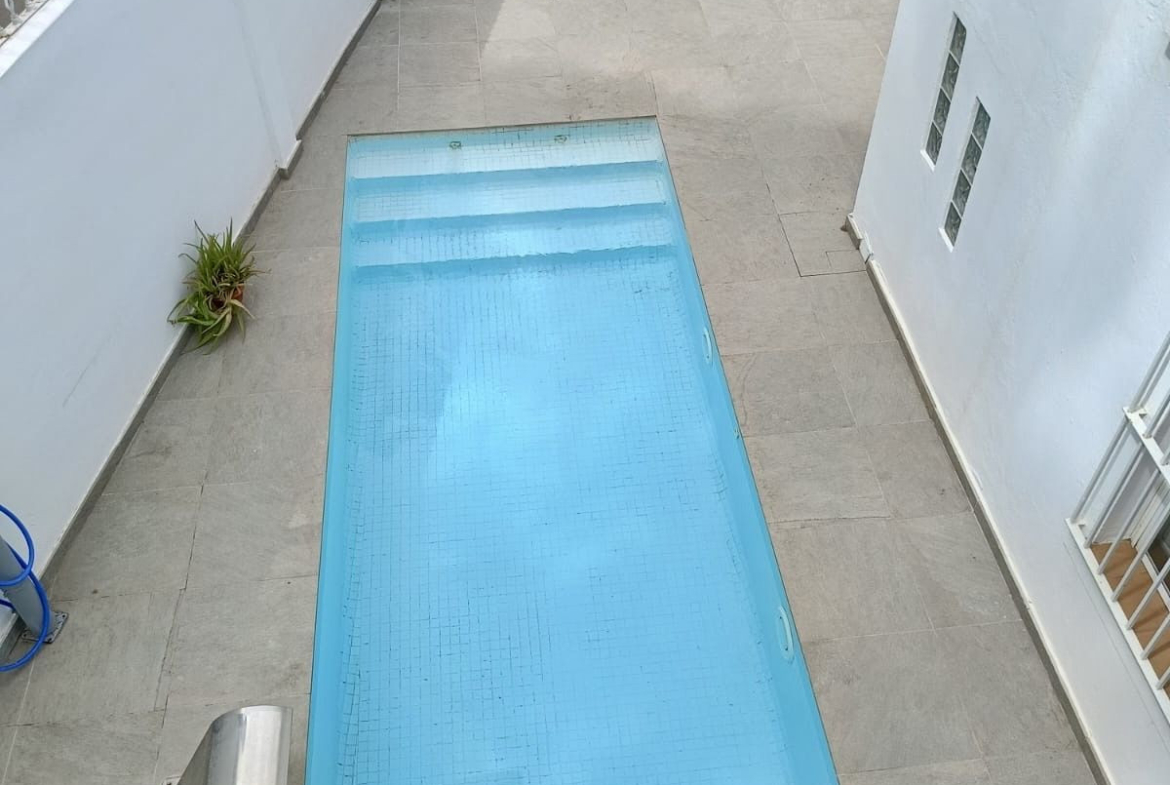 This beautiful villa with private pool, 4 bedrooms, 4 bathrooms, Jacuzzi, Garage. 2 floors. Is located in a premium location within walking distance to the beach and the famous restaurant Ancla San Pedro and other nice Chiringuitos.