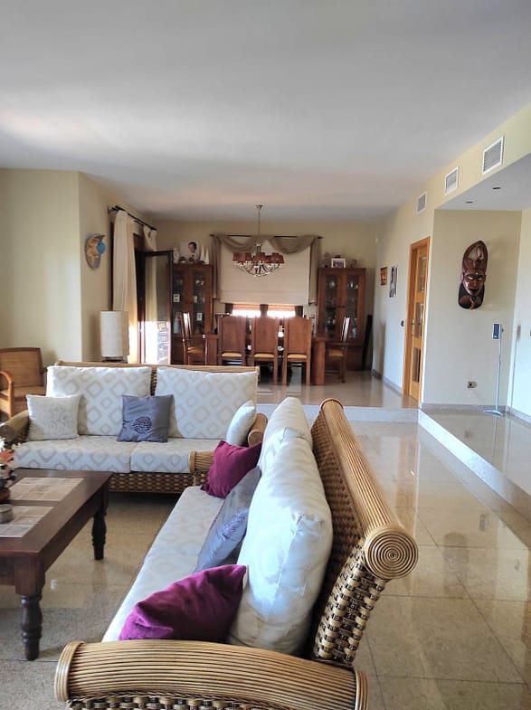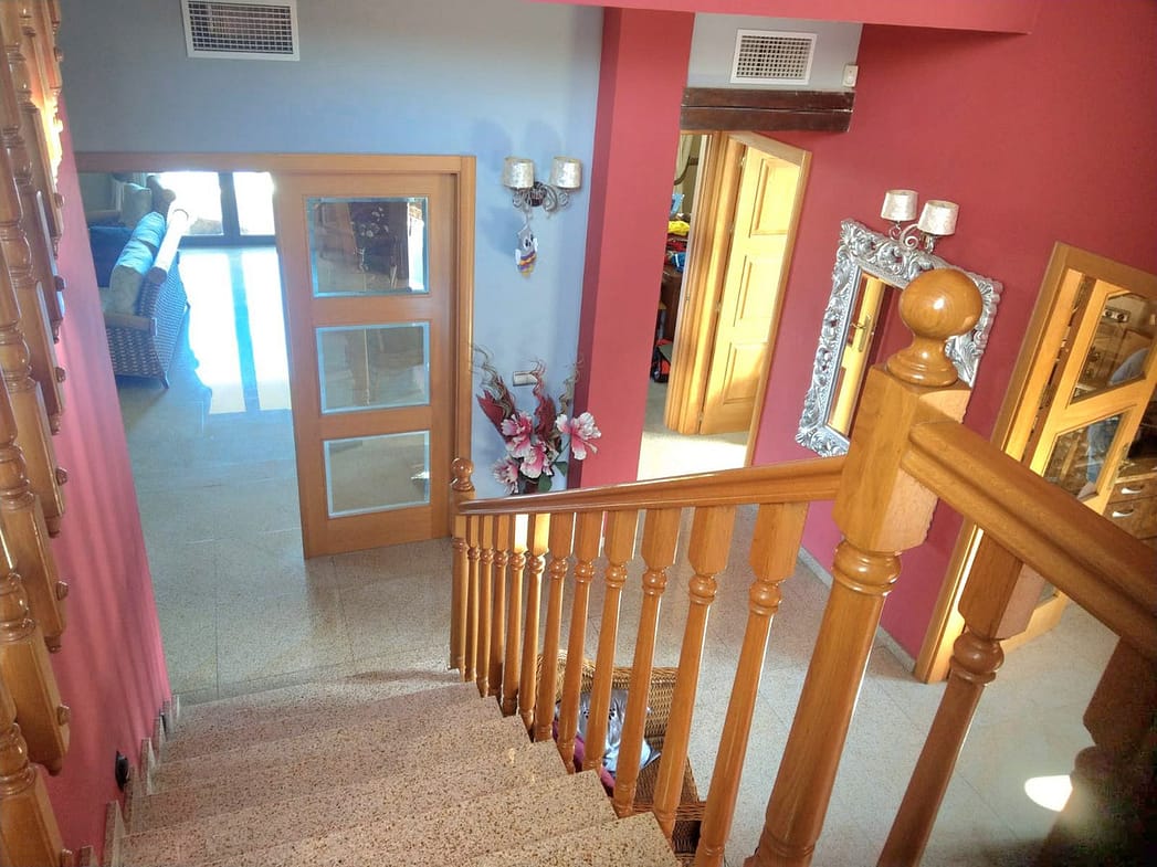 The first thing that springs to mind when entering the villa is grand and unique. The attention to details by the owner and the high ceilings throughout makes this house one to remember. On ground level you can find a large living room and dining area that opens out to breathtaking views and your private garden. The kitchen is very well presented with hand crafted doors. On this level we can also find an office or bedroom and a large bathroom. On the second level we find 2 very large double bedrooms 1 bathroom and what we like to call the masters of all masters with its own walking wardrobe and private bathroom. In addition, this house has a ground floor that is ideal for a bar, games room or cinema, at this stage it is used for storage, with a nice sauna and bodega, It has an area to park several vehicles and a garage..