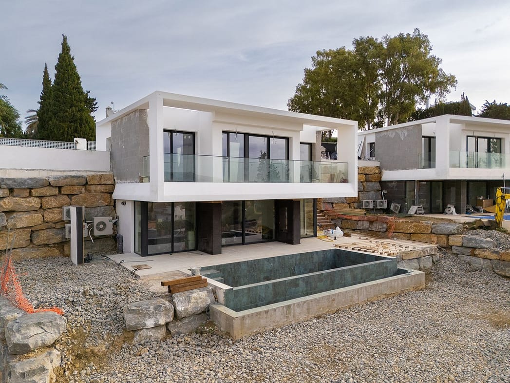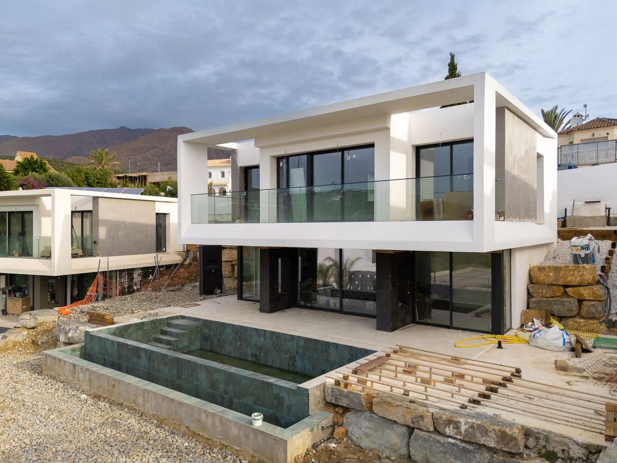 Currently under construction is this beautiful 4 bedroom villa for sale in Valle Romano Green Estepona. This beautiful project offers a selection of 8 exclusive southwest facing villas overlooking the golf course and the Mediterranean Sea. They are distributed over 3 levels, with 3 bedrooms on the upper floor, and 1 bedroom on the lower floor, plus a magnificent basement of 40 m2 with many possibilities for adaptation, bedroom, cinema room, games room, as well as having private terraces offering incredible views. Each villa sits on individual plots of almost 500 m2 and has more than 142 m2 built. This beautiful villa is characterised by its luminosity, large sunny terraces and a private garden with a magnificent saline water swimming pool.