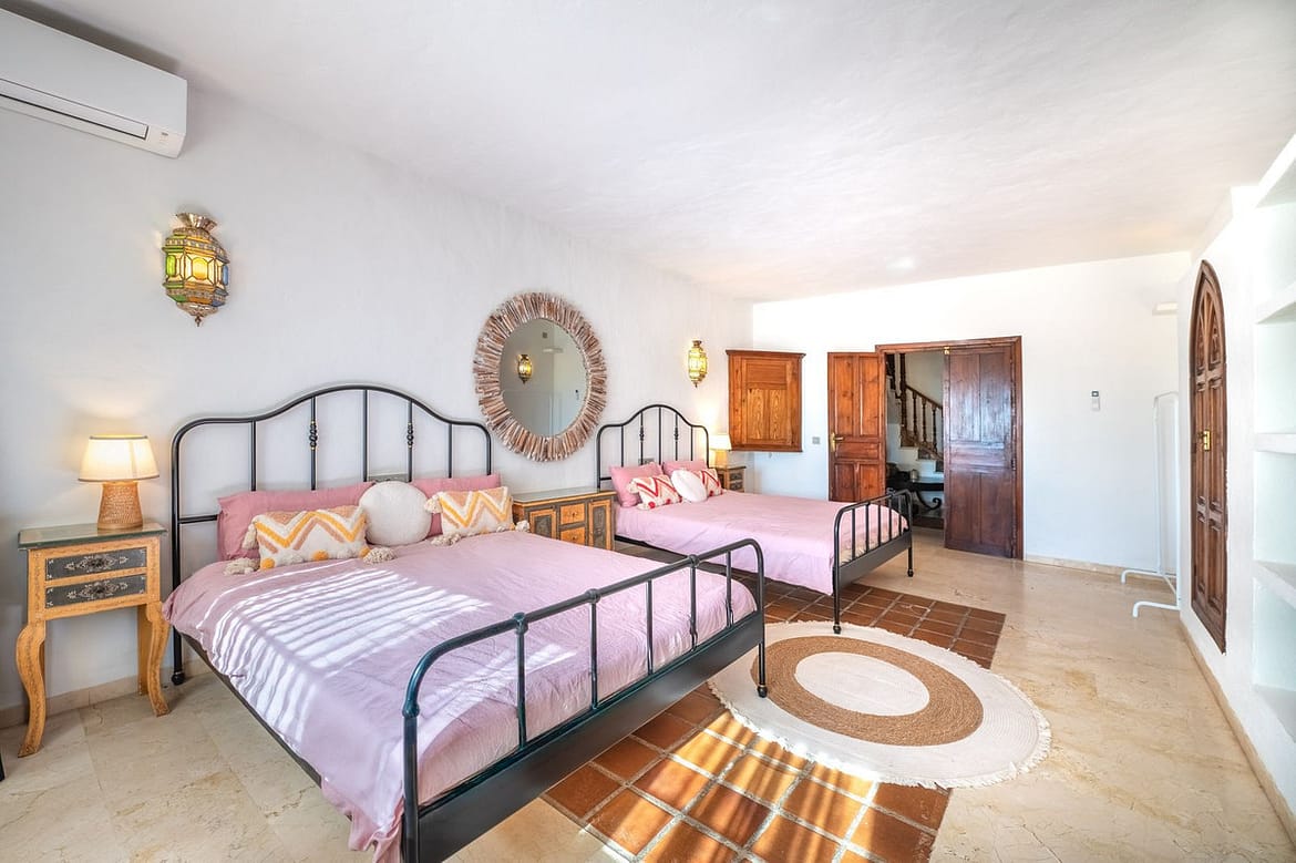 On the first floor, you’ll find the master bedroom with a walk-in closet and a ensuite bathroom. The master bedroom is complemented by its own private terrace, offering some of the best views on the property.