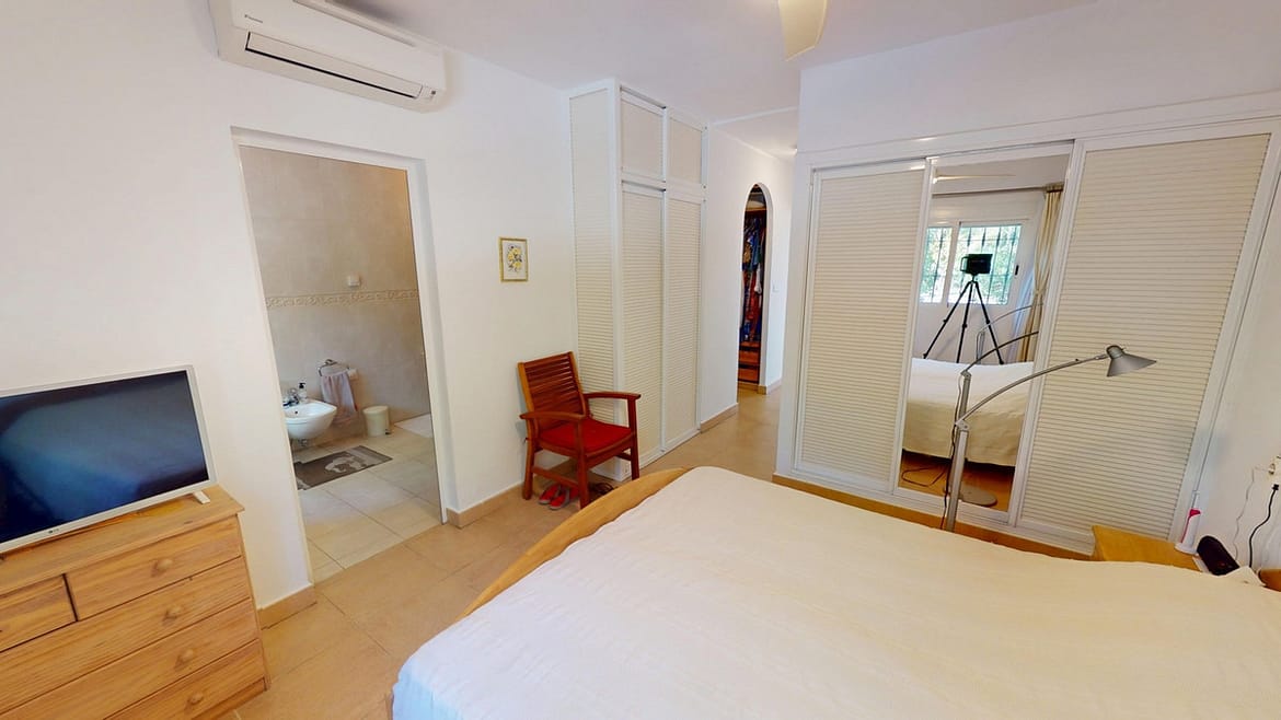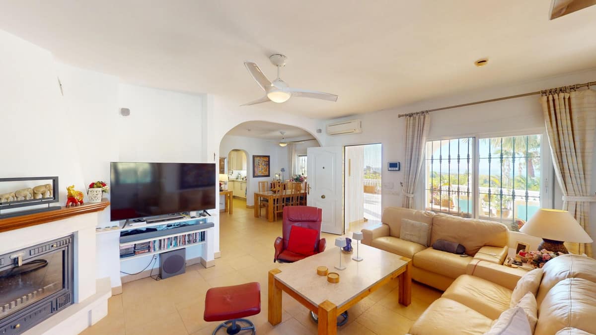 This charming villa in Vélez-Málaga combines comfort, spaciousness and a design that integrates tradition and modernity. The property has three bedrooms and two bathrooms, and an open-plan design that seamlessly connects the living room, dining room and kitchen, creating a bright and welcoming atmosphere. The living room has a cozy fireplace with a wooden mantel, perfect for cooler nights, and large windows that flood the house with natural light and offer views of the surroundings. The modern kitchen is equipped with stylish cabinets, granite countertops and stainless steel appliances, including gas hob and extractor hood. The villa has an office space and a decoration that combines contemporary and traditional elements, with artistic details that add colour and personality to the rooms. Outside, the property stands out for its large plot full of various fruit trees, including exotic fruits, as well as a small greenhouse and a storage room. The house has a carport, private pool with underwater speakers and counter-current swimming system, chill out area and on the terrace a barbecue area, perfect for enjoying outdoor meals while contemplating spectacular views of the sea and the mountains. This villa represents a unique opportunity for those looking for a home with charm, comfort and ample amenities in the beautiful region of Malaga. We are delighted to be able to present this property to you soon, either personally or via virtual viewing. Because this world is unique – like our Axarquía. In Andalusia. On the Costa del Sol. Here, on the sunny side of life…