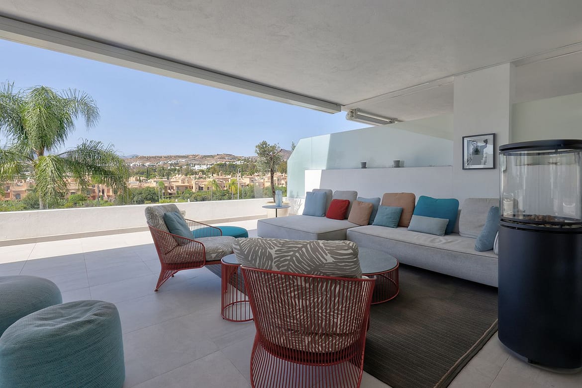 Luxury 4 bedroom 3 bathroom duplex apartment situated close to Benahavis. The apartment is situated on the first floor but has direct access from the entrance. Walking in you immediately are welcomed by the beautiful views and the huge terrace for the perfect outdoor living space. Open plan living and kitchen and dining area with laundry room and guest toilet. Also on this level and large double bedroom with en-suite bathroom and plenty of cupboard space.