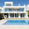 On the upper floor there are 2 more bedrooms with one en-suite master bathroom + a large south facing sun terrace with beautiful panoramic views to the surroundings.