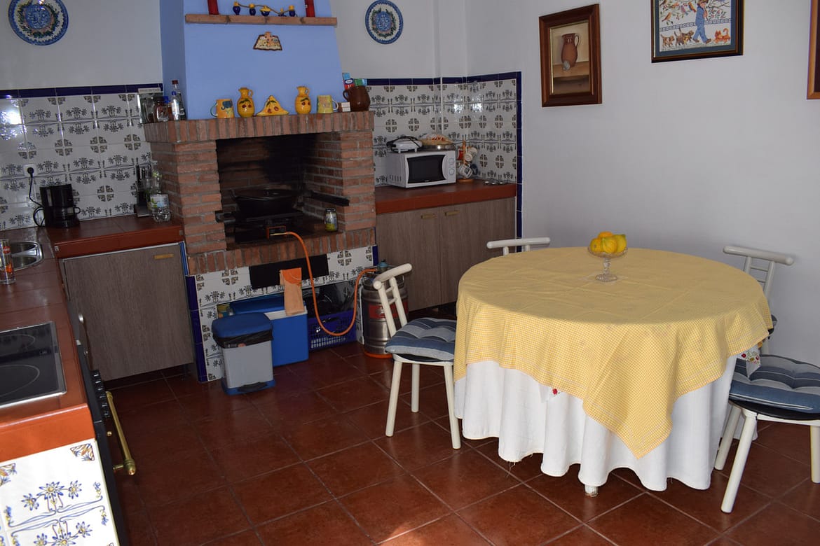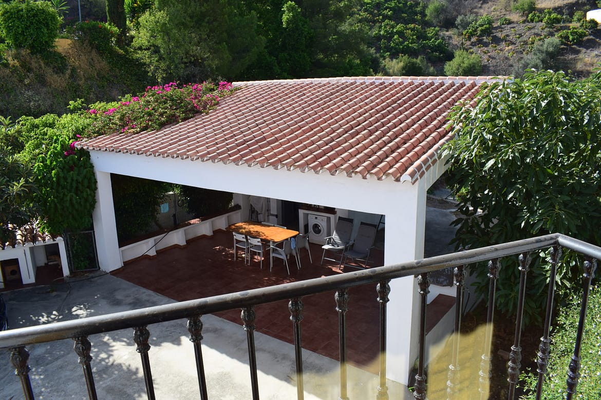 8,000 m2 irrigated farm with mango production. The villa has 160 m2 with a 60 m2 solarium, 4 bedrooms all with two windows or balconies (2 on the ground floor and another 2 bedrooms on the upper floor), 2 full bathrooms with window, large living room with fireplace and very large kitchen with all the appliances plus another fireplace and with direct access to the plot where we find an 80 m2 porch and another bathroom plus a storage room, parking area for 5 cars and the private pool with spectacular views of the valley of Velez Malaga to the coast of Torre del Mar, you can even see the sea. Without a doubt, the farm is located in an idyllic area where you can enjoy the countryside and tranquility. Access to the farm is by a private concrete road of 1 km, from Vélez Málaga it takes us 15 minutes to reach the farm. There is also another 1,000m2 plot with a 400 m3 water tank, there is also a reserve cistern under the pool and the entire farm has automatic irrigation for the Mangos. It is sold with all the furniture and all the constructions are registered and legal, IBI is paid for the villa € 562.