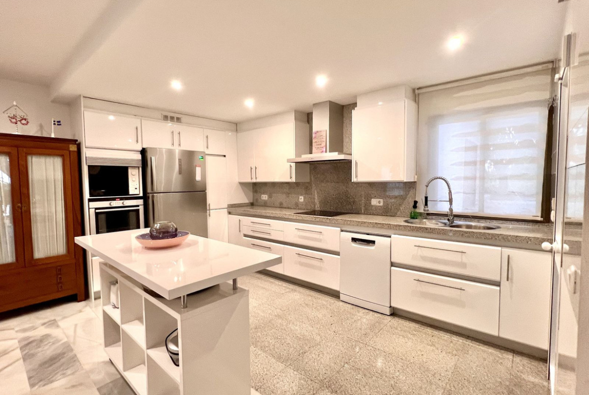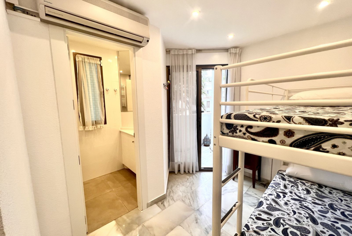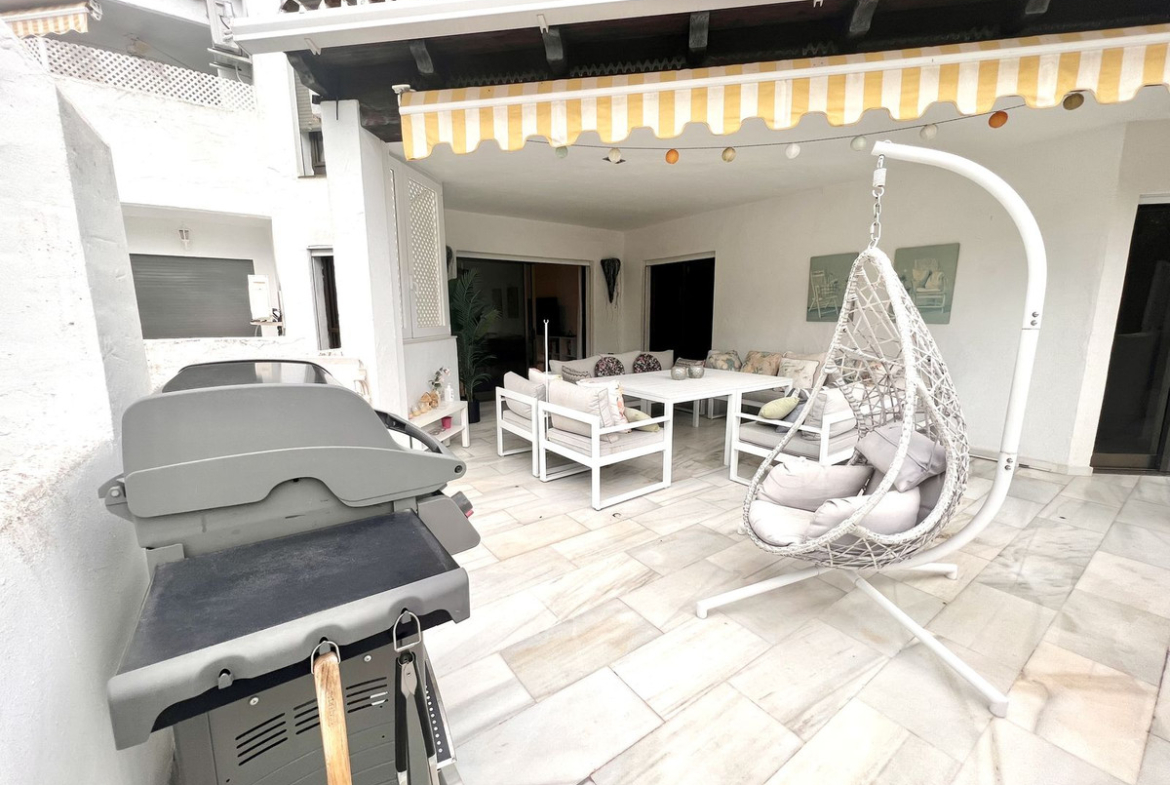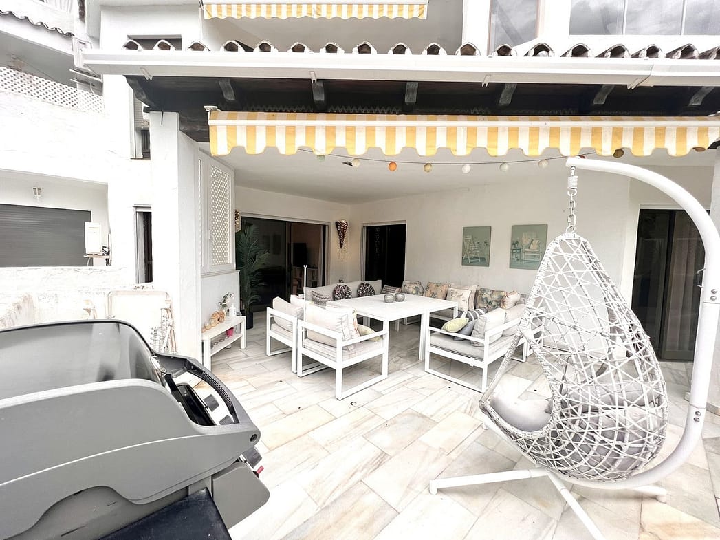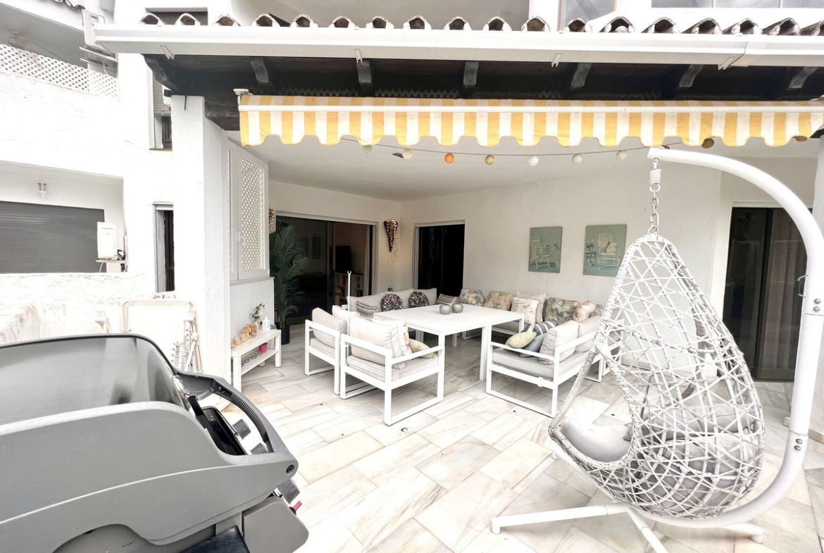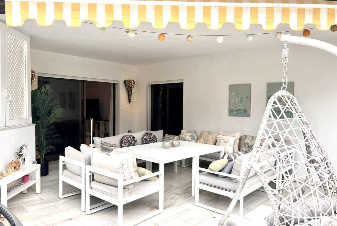 Ideal holiday acommodation for families!! Spacious 4 bedroom 4 bathroom elevated groundfloor apartment located only 1 min walk to the best beaches in Marbella. This open plan apartment is fully equipped with everything you need for a perfect holiday and it has a large terrace.