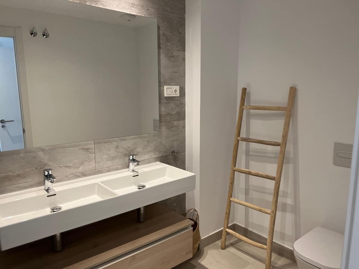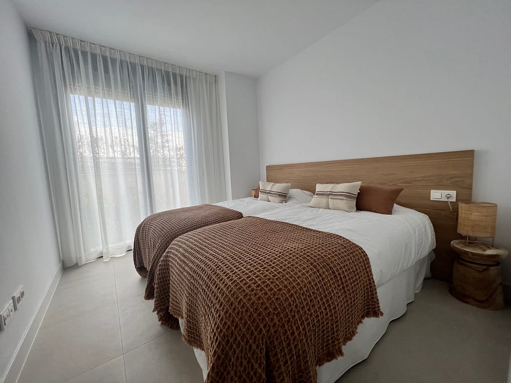 The masterbedroom has an ensuite bathroom and a dressingroom with direct access to the terrace where you can enjoy the lovely seaviews and view to the community pool.