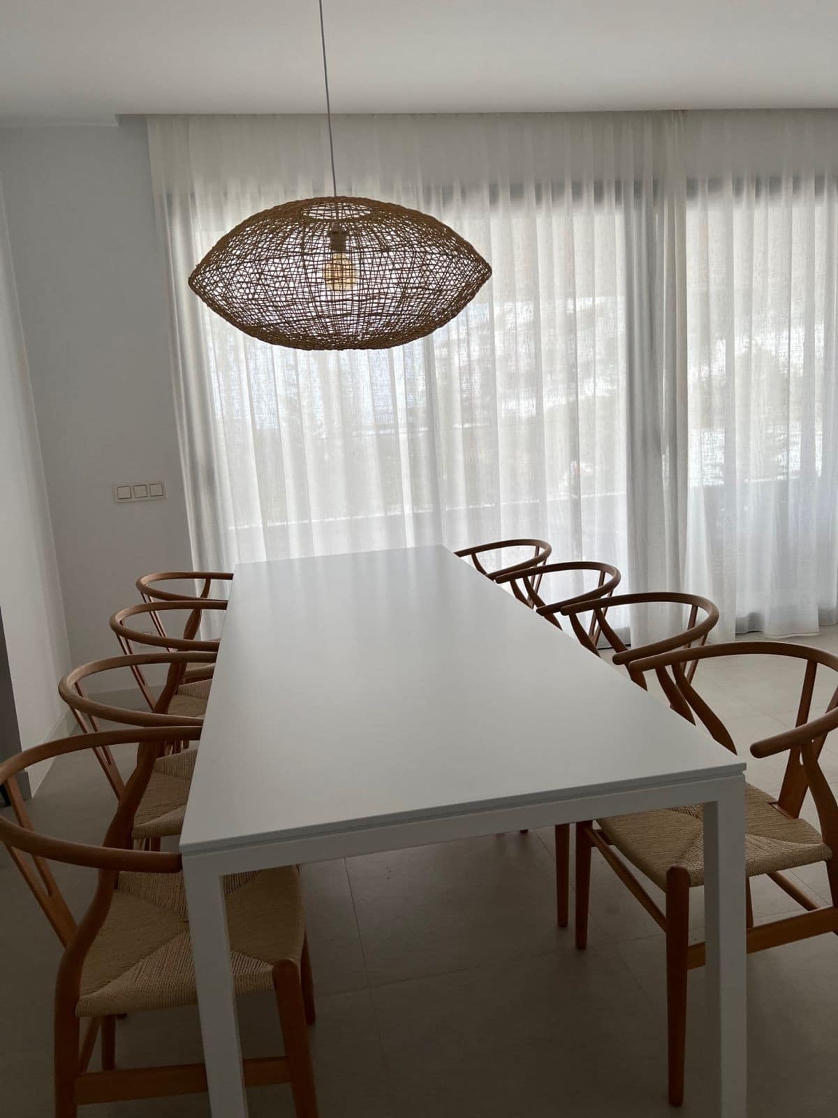 The fully fitted kitchen with induction cooker, hob, oven microwave , dishwasher, washing machine and dryer is open plan to the large living room and extend to the South facing terrace on opening the sliding doors.