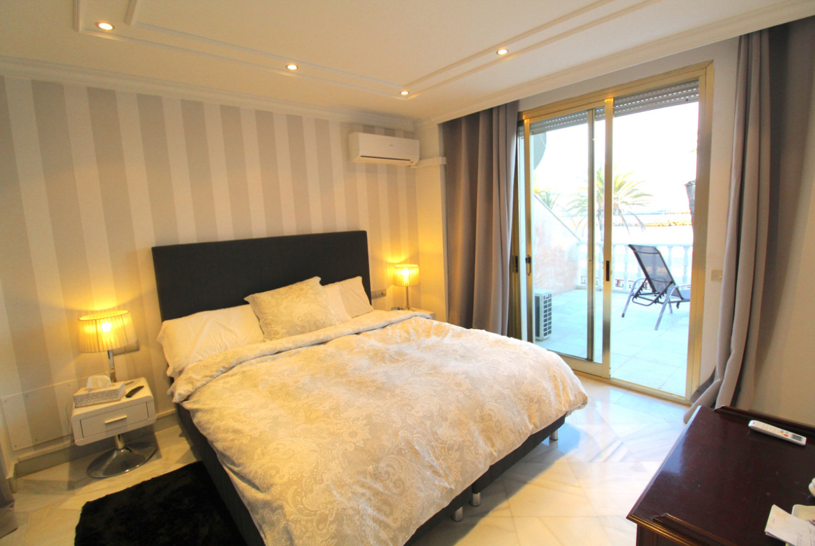 Stunning 4 bedroom duplex apartment in a beachfront urbanisation just a few steps from the heart of Puerto Banus. The apartment is located directly to the beach, with stunning panoramic sea and beach views. The property has 4 ensuite bedrooms with fitted wardrobes. There is a spacious living area with a dining area and partially open kitchen. The kitchen is completely equipped. The gated development has 24h security, underground parking, beautiful communal gardens and swimming pool, as well as direct access to the promenade and beach.