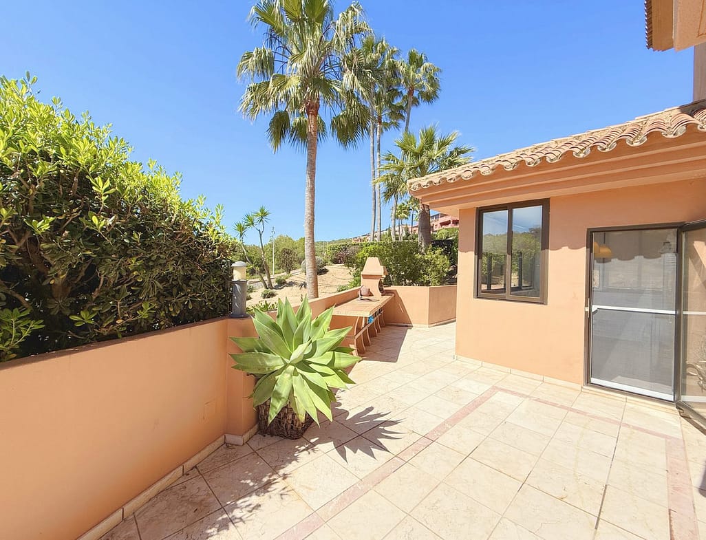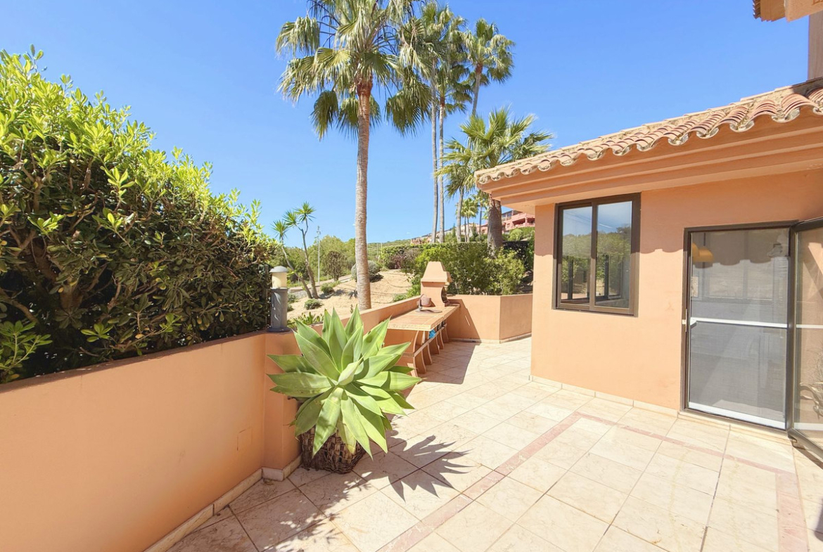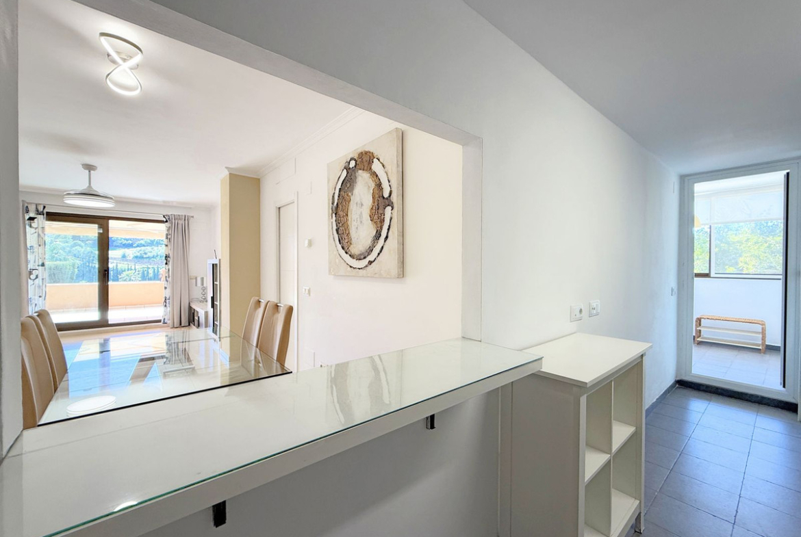 This magnificent ground-floor apartment stands out for its spacious private garden and excellent southwest orientation, ensuring exceptional brightness throughout the day and breathtaking sunsets. Located in a privileged setting on the frontline of a golf course, it offers stunning views of the mountains and the sea. It is situated in Casares Costa, within the exclusive Doña Julia Golf area, a rapidly developing zone featuring luxury developments and a Hilton hotel under construction.