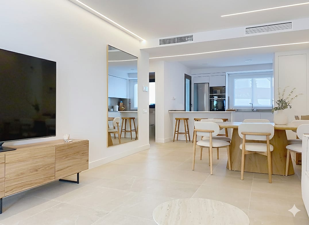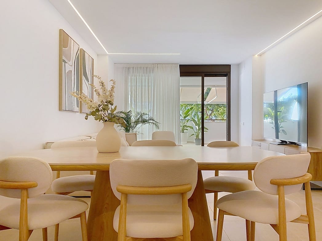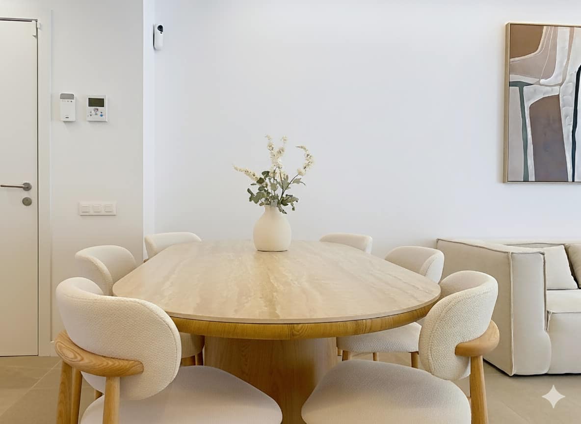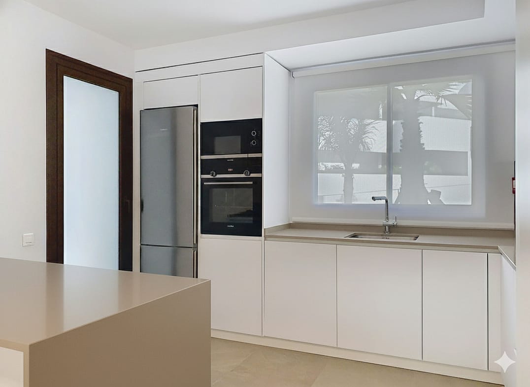 Inside, the apartment is distributed into 4 spacious bedrooms with built-in wardrobes, 2 full bathrooms with top-quality materials, and an additional guest toilet for greater functionality. The living and dining areas integrate perfectly with both the terrace and the kitchen, which is modern, open-plan, and fully equipped with Siemens appliances, Silestone countertops, and a laundry room with drying area. A peninsula will soon enhance the kitchen.