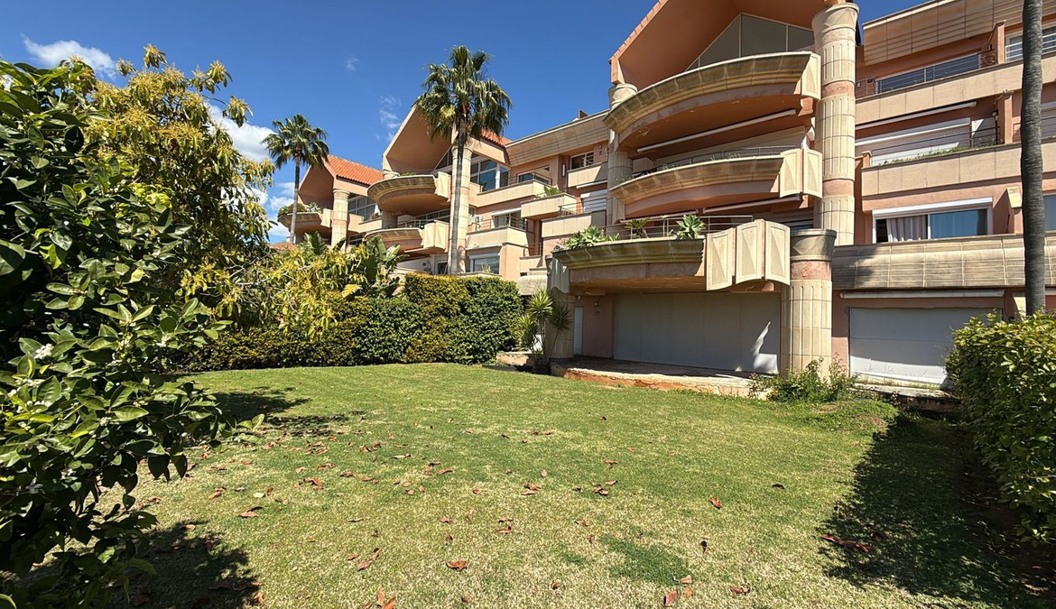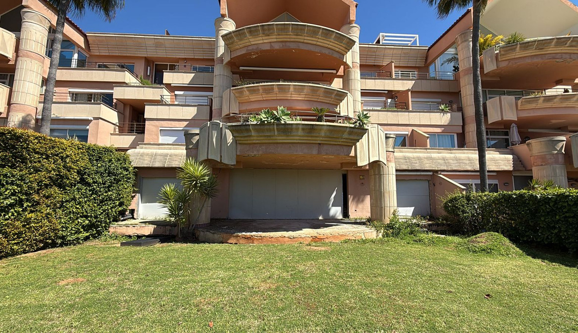 An amazing development opportunity to invest in a double ground floor apartment in Magna Marbella with its own private garden boasting lovely sea and mountain views and situated front line to the Golf Course.
