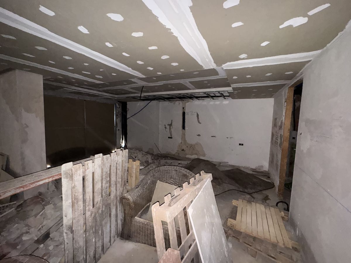 The property is currently presented as a building site, but partly new floor tiles has been fitted and remaining tiles are included in the sale. The property has been totally re-wired and has had new automated air-conditioning installed. Belonging to the property is two private underground parking spaces with lift taking to the ground floor.