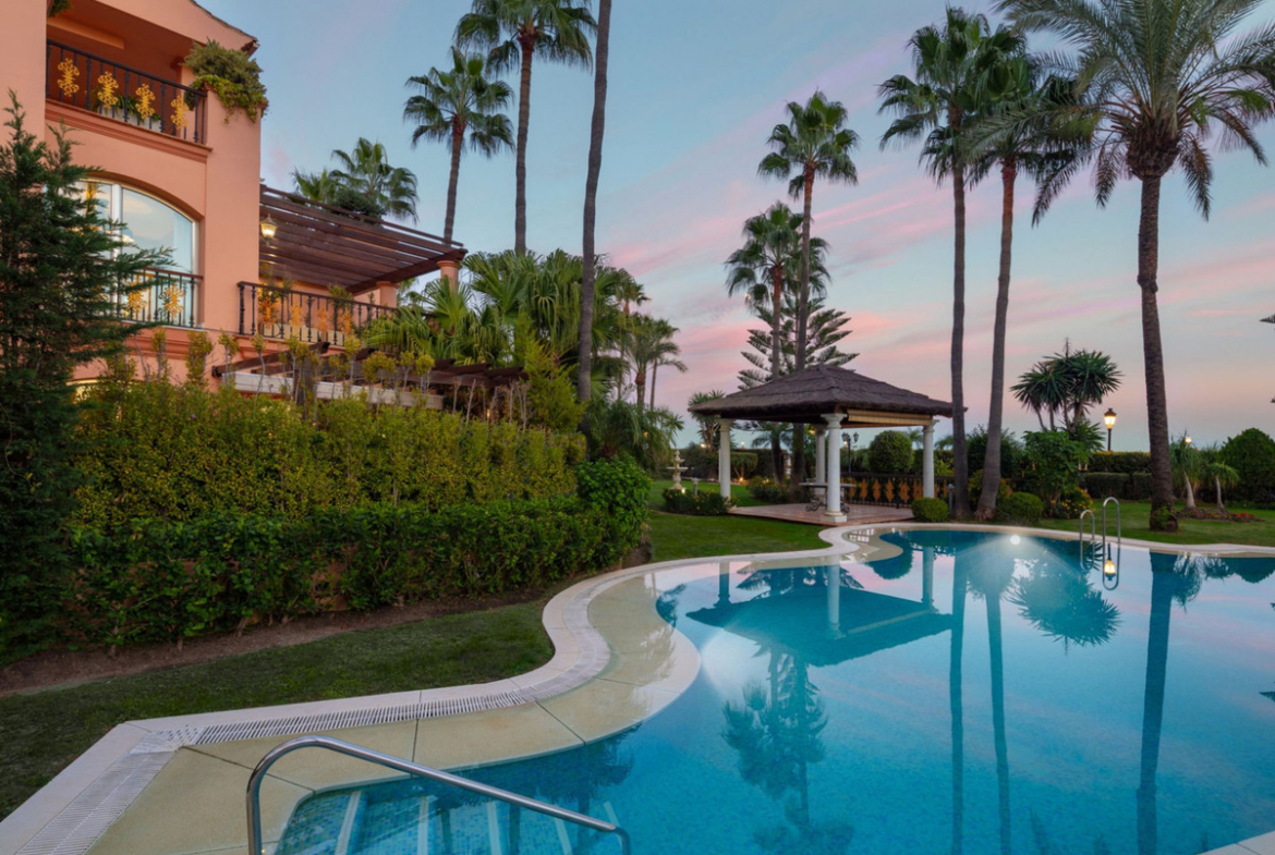 This magnificent apartment boasts four generously sized bedrooms and four well-appointed bathrooms, ensuring ample space and privacy for all residents. The interior spans an impressive 395m², complemented by a private plot of 410m², providing a sense of openness and freedom. The communal pool offers a refreshing retreat, while the private garden and terrace provide serene outdoor spaces for relaxation and entertainment. The property is in good condition, ensuring a comfortable and hassle-free living experience.