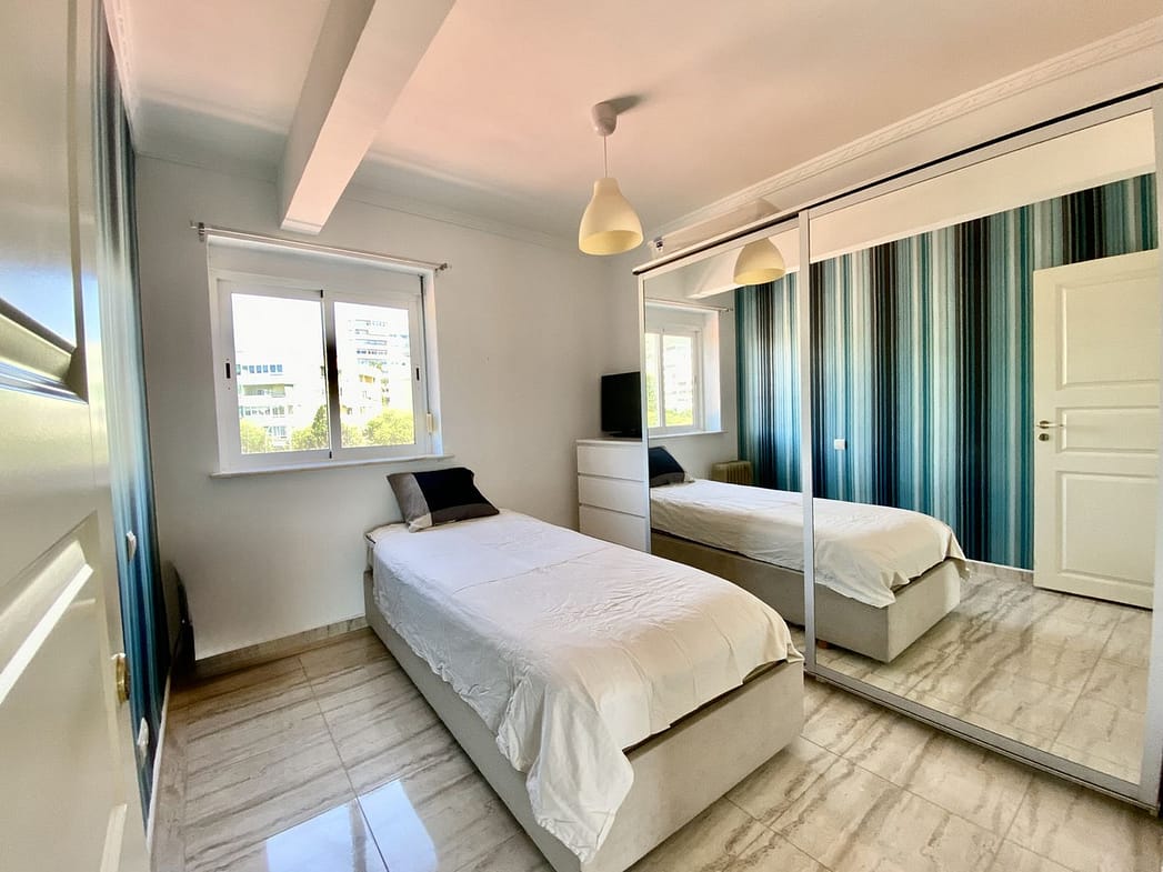 The apartment features 4 bedrooms and 2 bathrooms, including a master bedroom with en-suite bathroom and private sauna – a unique and luxurious touch. The layout is practical and welcoming, with an entrance hall leading to a spacious kitchen and a large living room filled with natural light thanks to its generous windows.