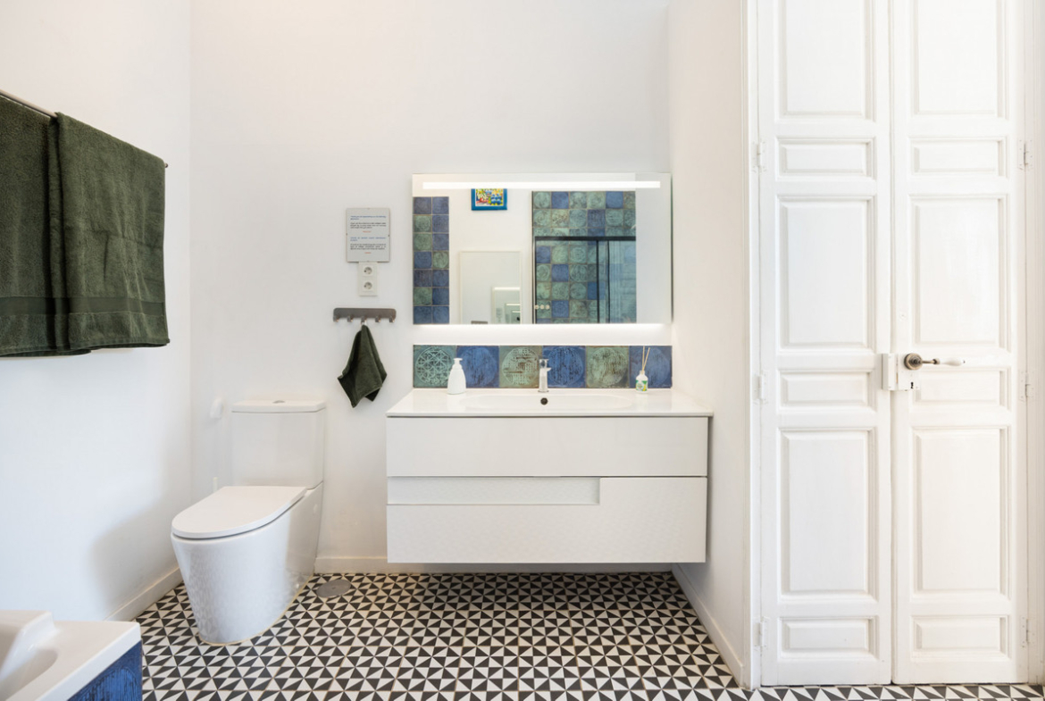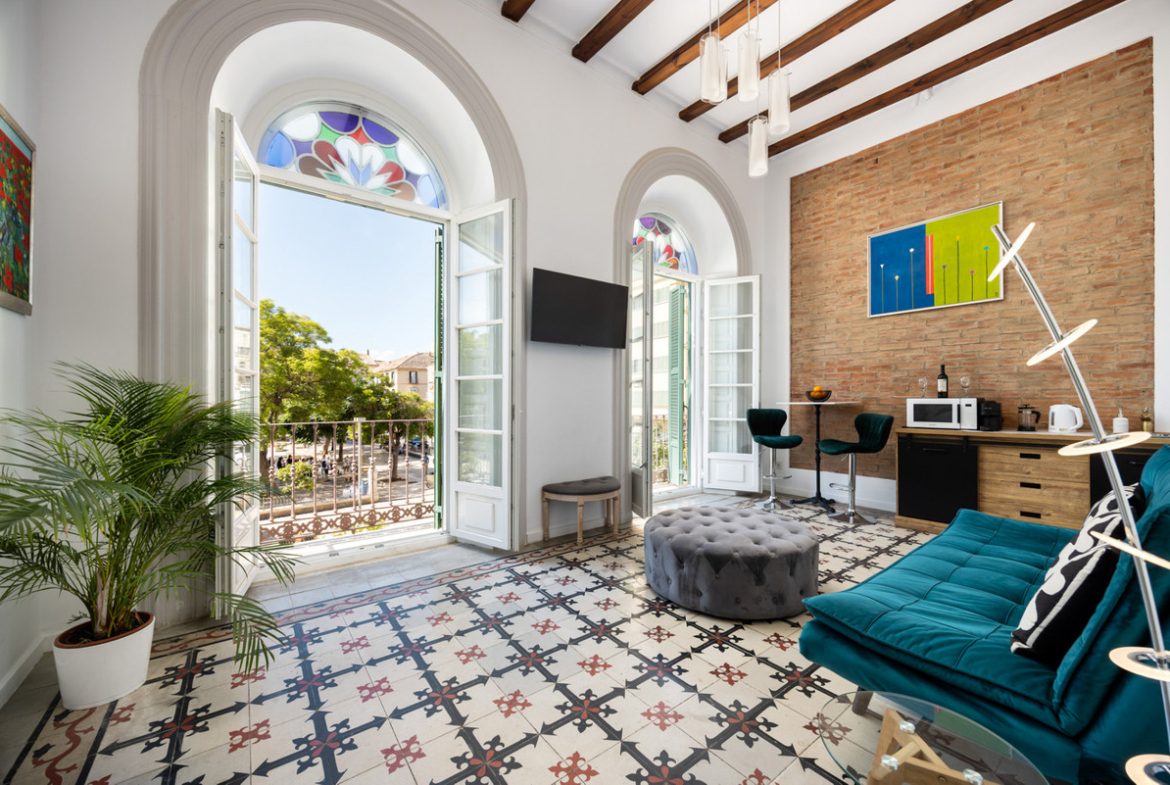 Impressive 4.2-meter-high ceilings with exposed beams, 3-meter doors, and original 19th-century tiles anchor a high-end renovation that honors the building’s heritage while enhancing everyday comfort. The spa-style bathrooms offer generous dimensions and rain-effect showers; central air conditioning serves the entire residence. The versatile layout allows for an independent studio or three-bedroom apartment, at the moment, it's functioning as an Airbnb, making this ideal for guests or additional income as a short-term rental.