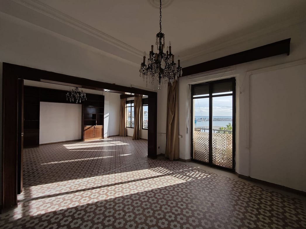 spectacular stately home with large windows and open views of the port of Malaga. Located in one of the prime areas of Malaga, this property stands out for its elegance and enormous potential for renovation. It retains its original charm, with a beautiful hydraulic floor in perfect condition, high ceilings, moldings, large windows and views of the Mediterranean Sea.