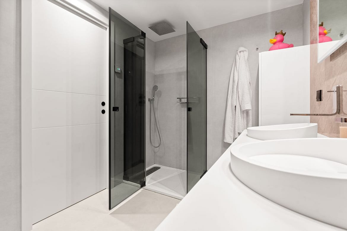 The apartment boasts four generously sized bedrooms, three of which benefit from luxurious en-suite bathrooms, while the fourth bathroom is separate, ideal for guests.