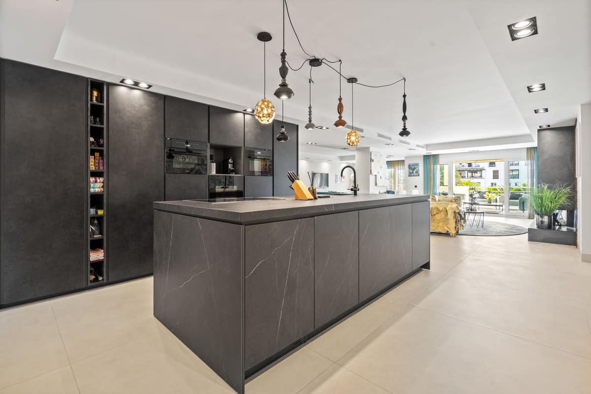 The spacious, light-filled living area features an elegant open-plan kitchen with high-end appliances, perfect for modern living and entertaining. A separate laundry room adds practicality and convenience.