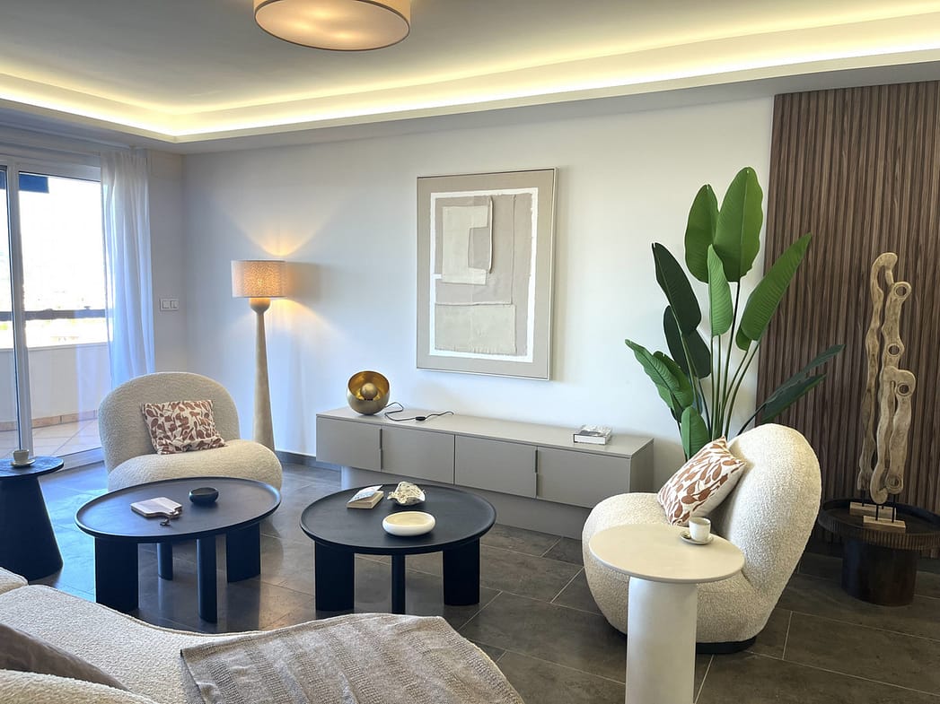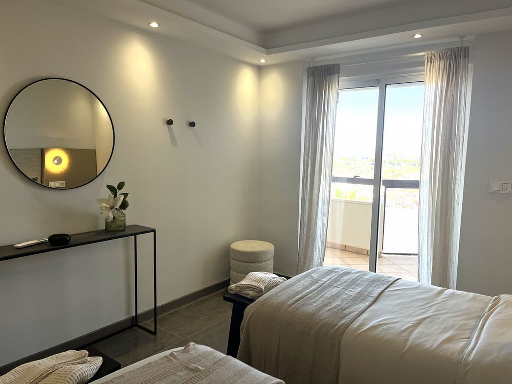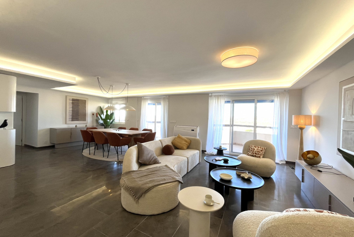Experience the rare sense of space and openness in this beautifully renovated apartment, created by merging two separate units into one generous and well-designed home. This property offers panoramic views of the Mediterranean Sea and the surrounding mountains, all within 15 minutes’ walking distance to the beach and local amenities.