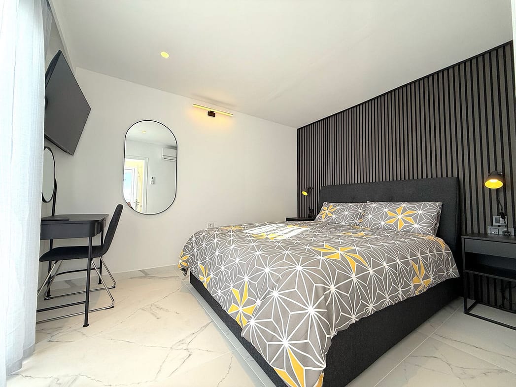 In a separate building on the terrace, discover a charming single bedroom. It’s the perfect hideaway for the night owl in your group or a peaceful sanctuary for afternoon naps. The roof terrace is the crown jewel of this penthouse, featuring sunbeds, a BBQ, and a dining table for alfresco feasts with a side of sea breeze.