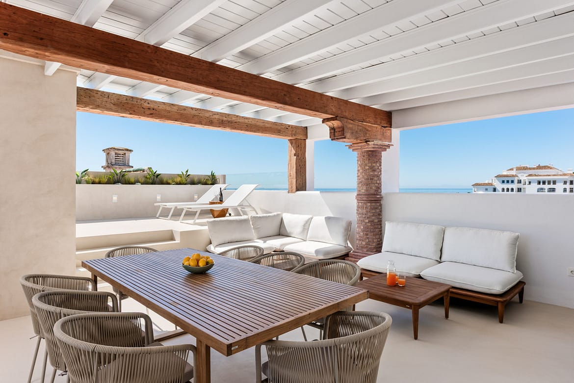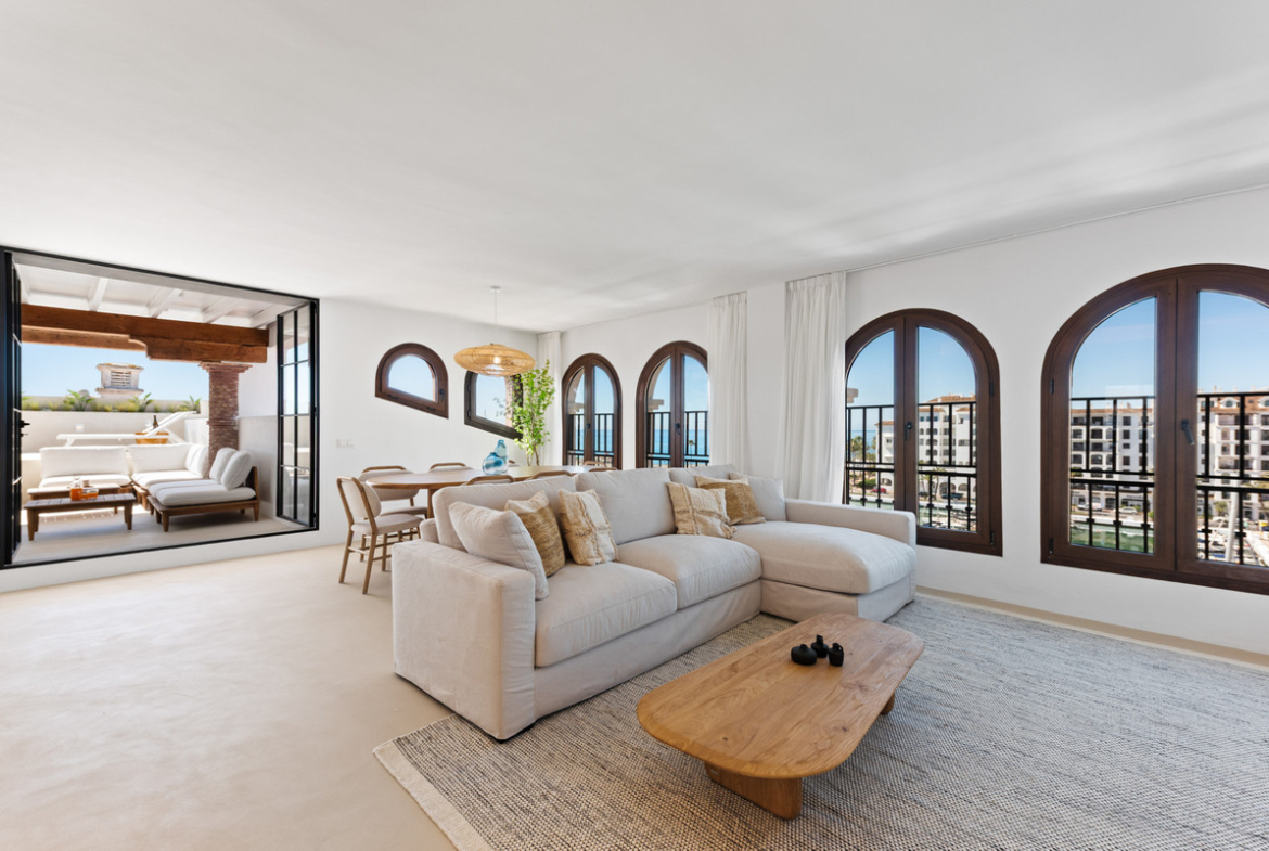 We present this stunning property in an unbeatable location: a duplex penthouse in the sought-after enclave of Puerto de La Duquesa, Manilva (Málaga). With 133.51 m² of built area and a spectacular 38.02 m² terrace, this unique home combines contemporary design, comfort, and a relaxed seaside lifestyle.