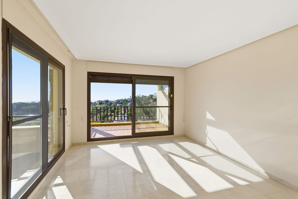 This elegant south‑facing duplex penthouse offers panoramic sea, golf and mountain views from its generous terraces and light‑filled interiors, in one of the most established residential areas of Los Arqueros Golf & Country Club.