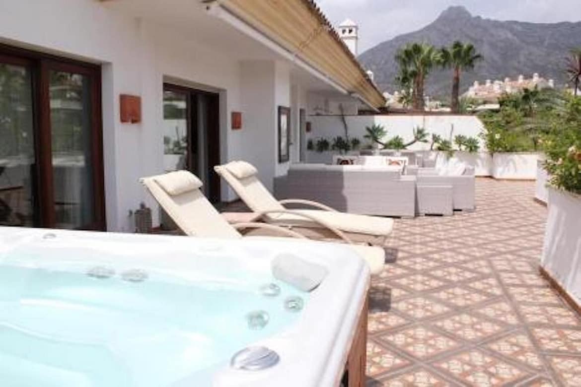 Luxury 4 bed duplex penthouse in a prime location. Among the features are air conditioning (cold/hot), under floor heating throughout, marble floors, a fully equipped kitchen and a wonderful fireplace. Also there is an intercom and alarm system. This exceptional penthouse benefits from a jacuzzi and 2 private subterranean parking spaces as well as a storage room.