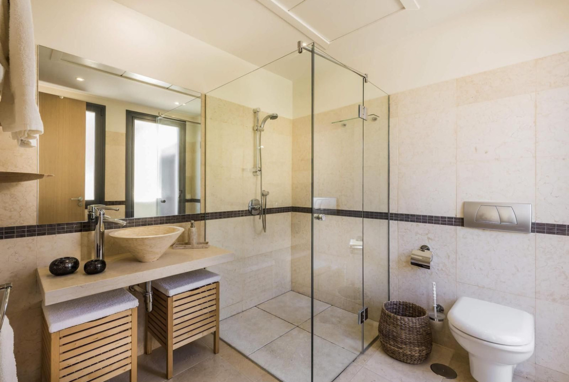 Built on two levels and in Scandinavian style, the penthouse welcomes you at the entrance with a large living room with very big panoramic windows and access to a south oriented terrace. From the living room, you access the fully fitted kitchen and dining area, both with direct orientated access to a huge second terrace, with outdoor dining table, BBQ area and two lounge/sitting areas. Two bedrooms with en-suite bathrooms and one extra guest bathroom also on this level.