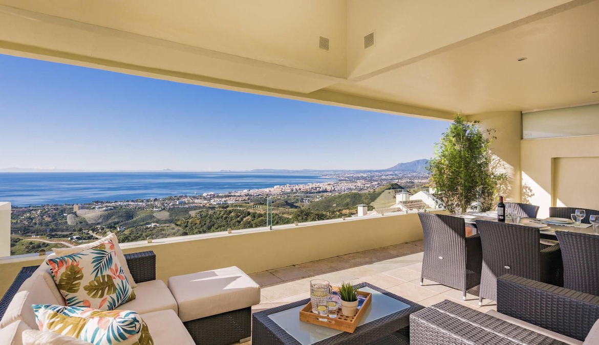 A remarkable duplex with four very big and private terraces and endless panoramic views of the Mediterranean Sea and the entire coast. The apartment is very luxurious and spacious, equipped with focus on high quality interior in every aspect ensuring the best settings for your holiday.