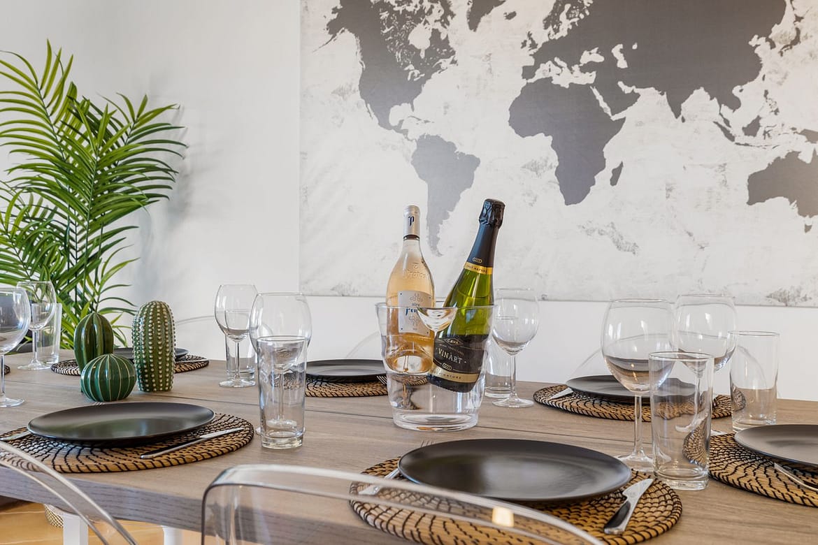 The main living and dining area is bright and airy and has enough seating up to eight guests.