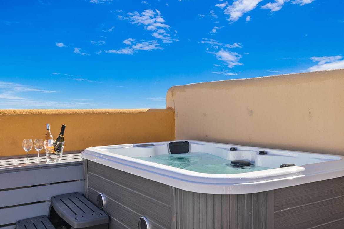Off the main room you have a terrace area with seating and another huge rooftop terrace with outdoor dining area, and lots of sunny and shady areas to enjoy the spectacular views.