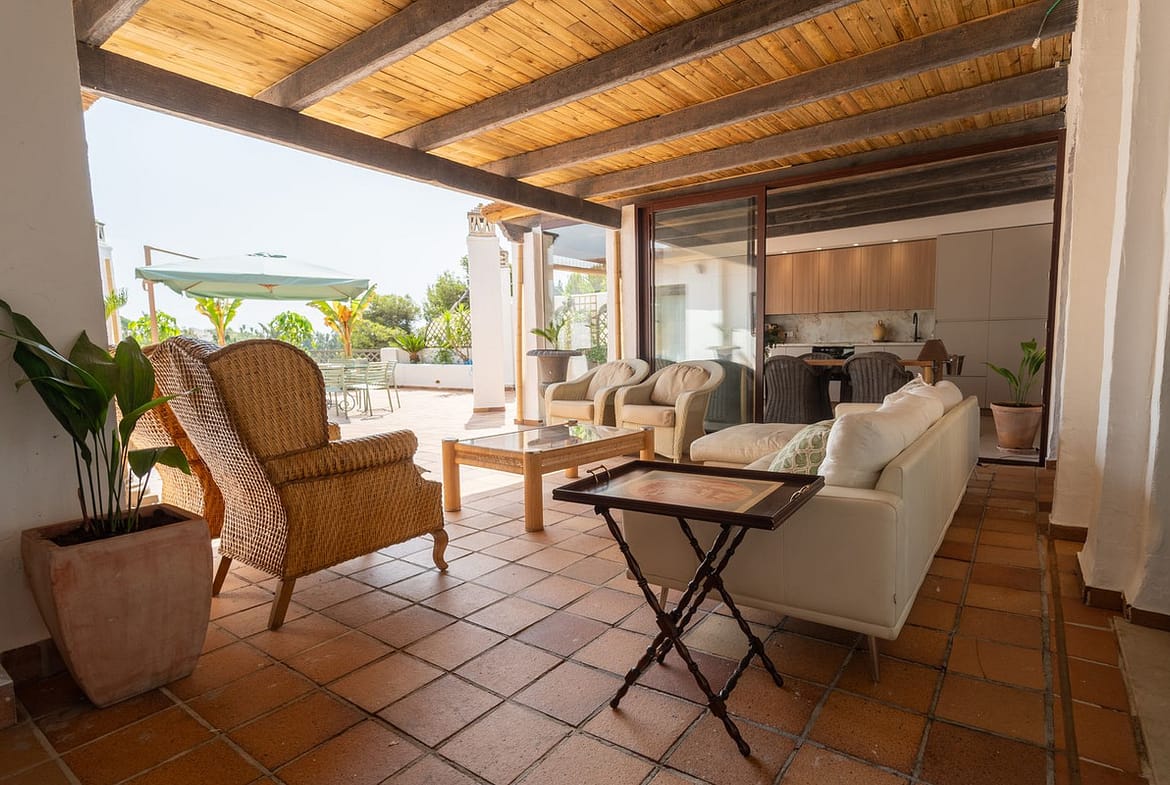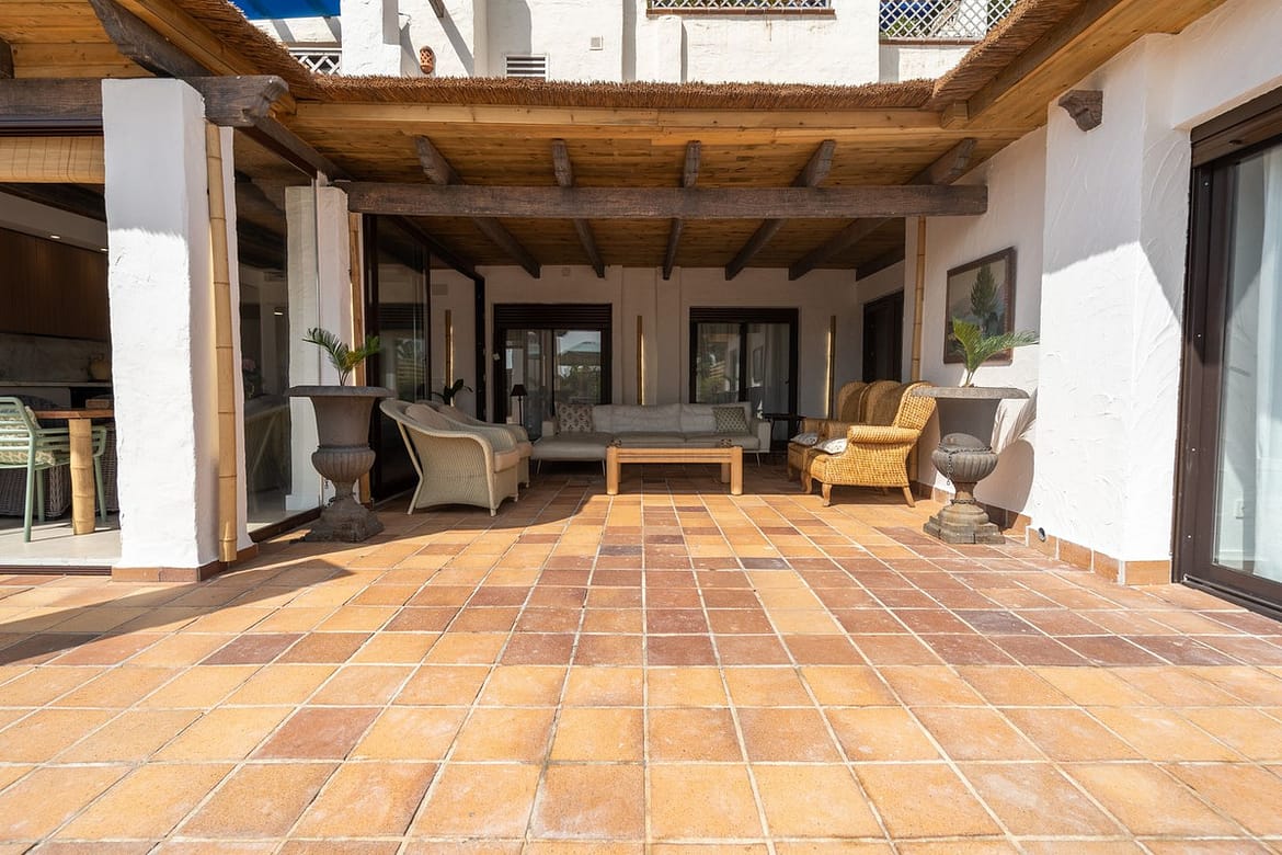 The private terrace is the highlight of the home, offering a unique space to relax, enjoy alfresco dining, and take in the breathtaking views. Ideal for golf enthusiasts and those who want to be close to the exclusive atmosphere of Trocadero Río Real.
