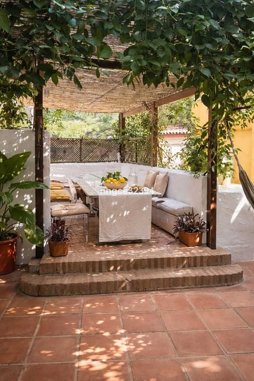Arranged over multiple levels, the house unfolds with a natural sense of flow and privacy. The main living areas feature traditional terracotta floors, classic proportions, and a welcoming atmosphere that reflects the soul of an authentic Andalusian home. A vine-covered terrace provides an intimate setting for outdoor dining and relaxed evenings, while the rooftop solarium offers open village and mountain views — ideal for sunset drinks or quiet mornings.