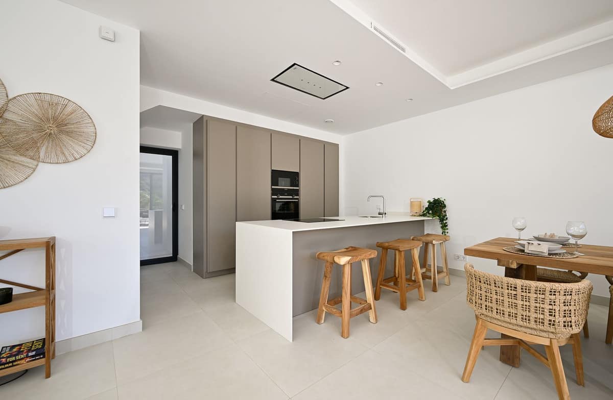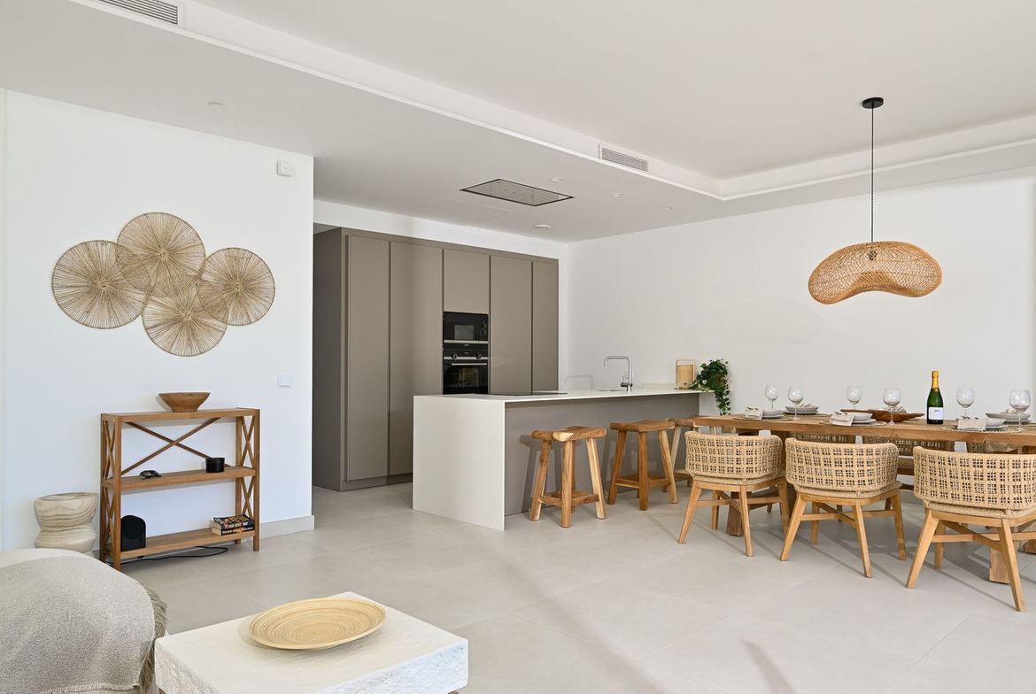 The heart of the home is a state-of-the-art, open-plan kitchen, dining, and living area, where modern aesthetics meet comfort and functionality. The space flows effortlessly onto a sunny south-facing terrace, perfect for alfresco dining and entertaining under the stars.